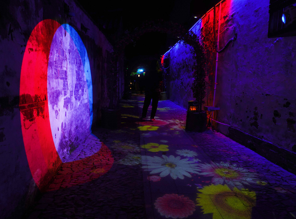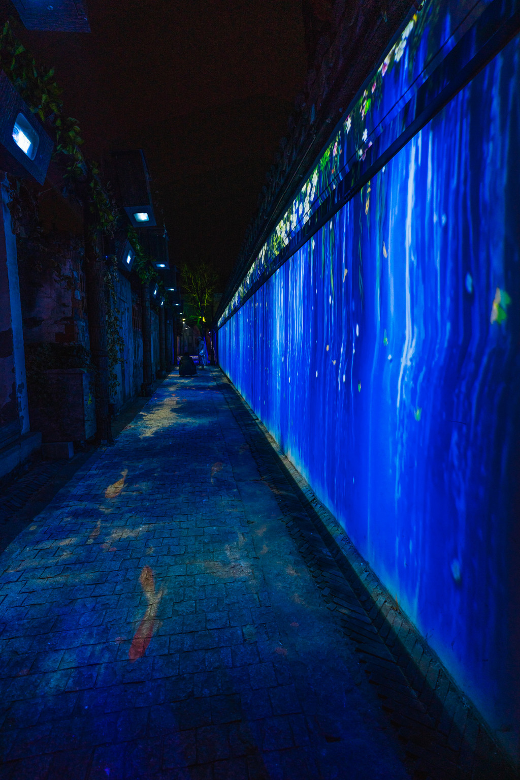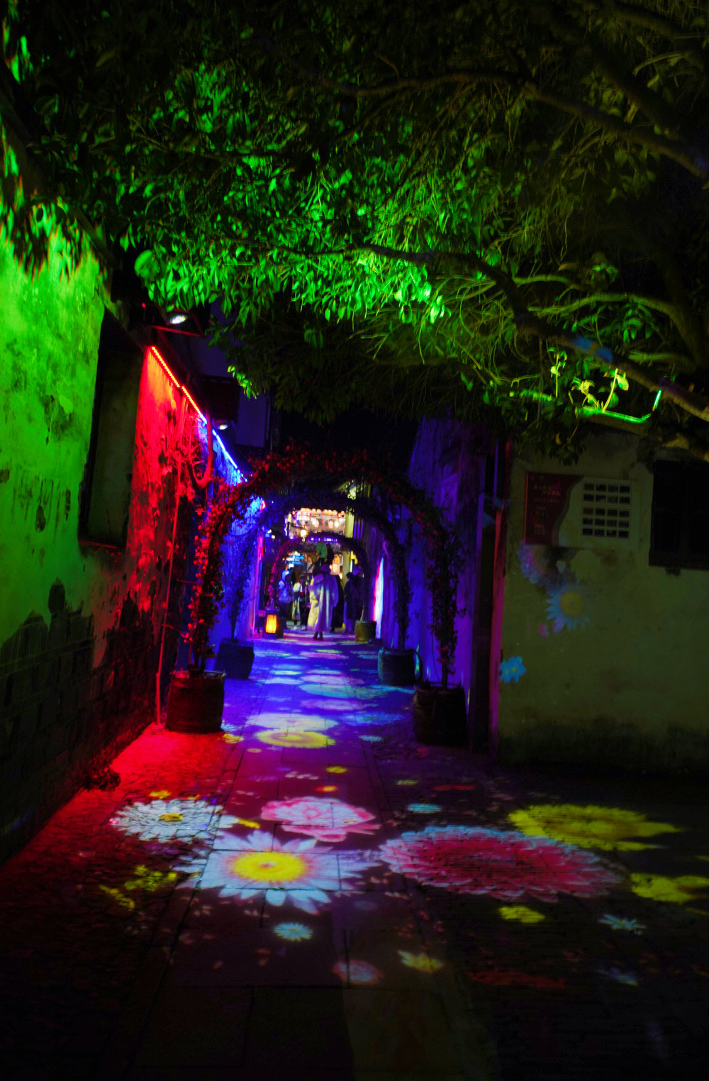 花巷在微微清冷的冬日中,以灯光秀撒落满街的花瓣,这里万花开遍,是夜晚的精彩。