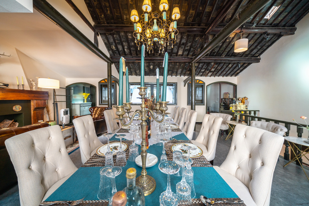 每个餐桌的蜡烛都不尽相同,却都充满了古典与浪漫。每一只绽放的玫瑰。点缀着佳肴,这一餐吃的不仅仅是美食与文化,更是氛围感。