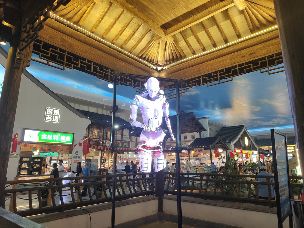 回到服务区大厅,发现桥畔那座并不允许游客入内的亭子里,竟然有全息影像,原来人家的亭子是作这样用场的。