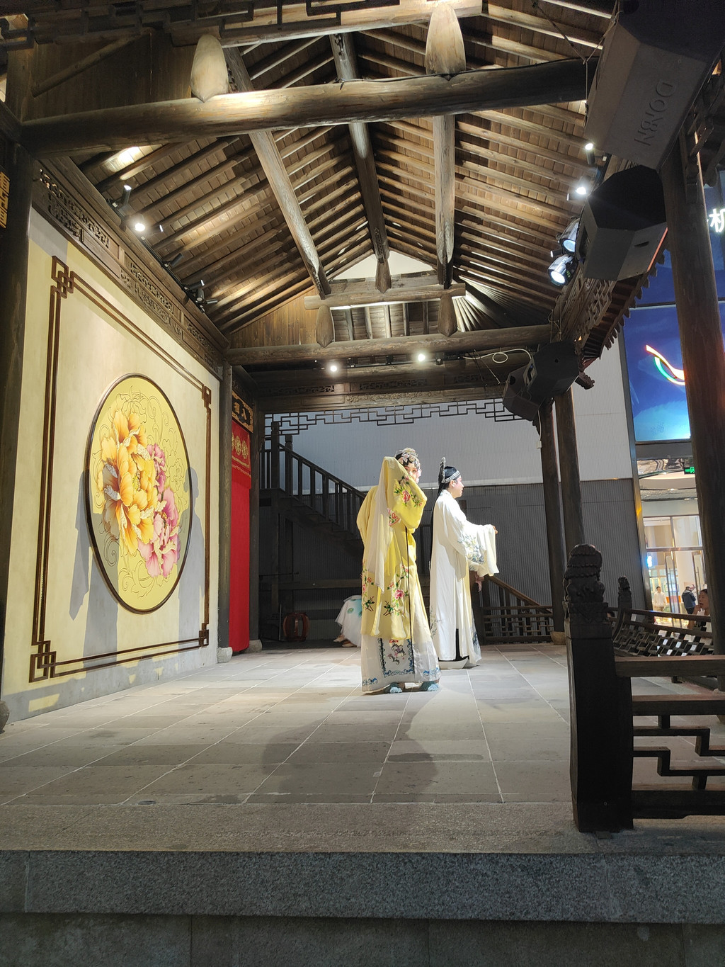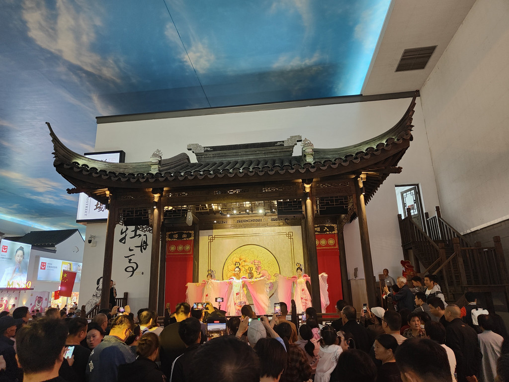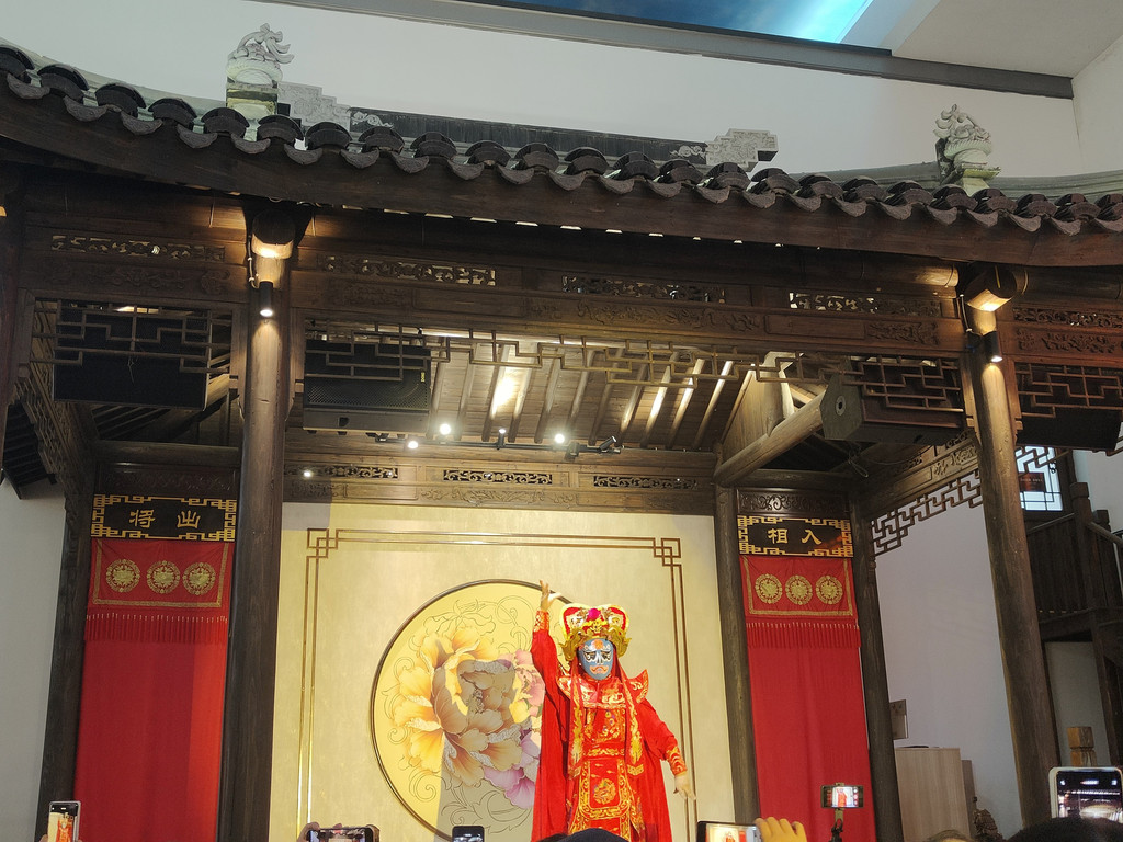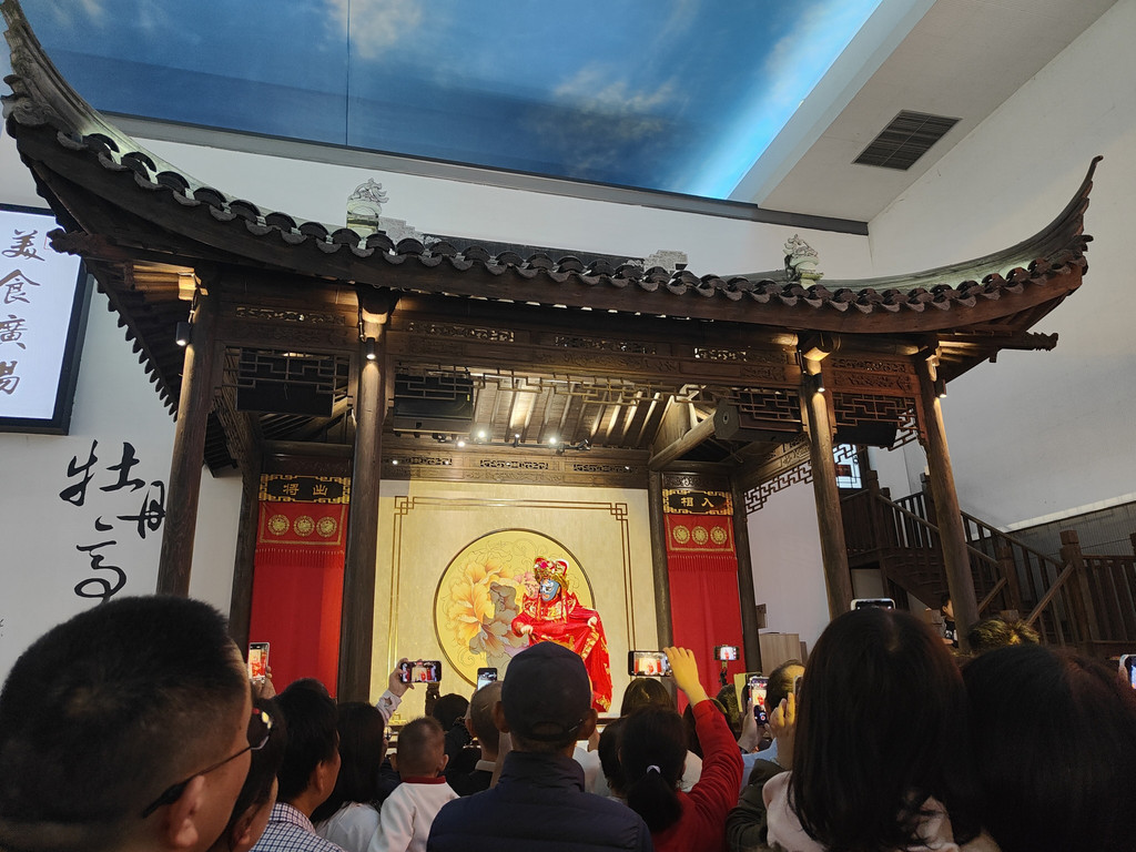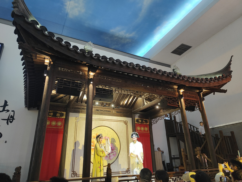 舞台开始表演昆曲了,我们又冲过去看了一段昆曲。我还想把剩下的那座园林逛完,小伙伴有点无奈:“今天这里全是人,游览体验又不是很好。再看下去,我们就真要服务区一日游了。”