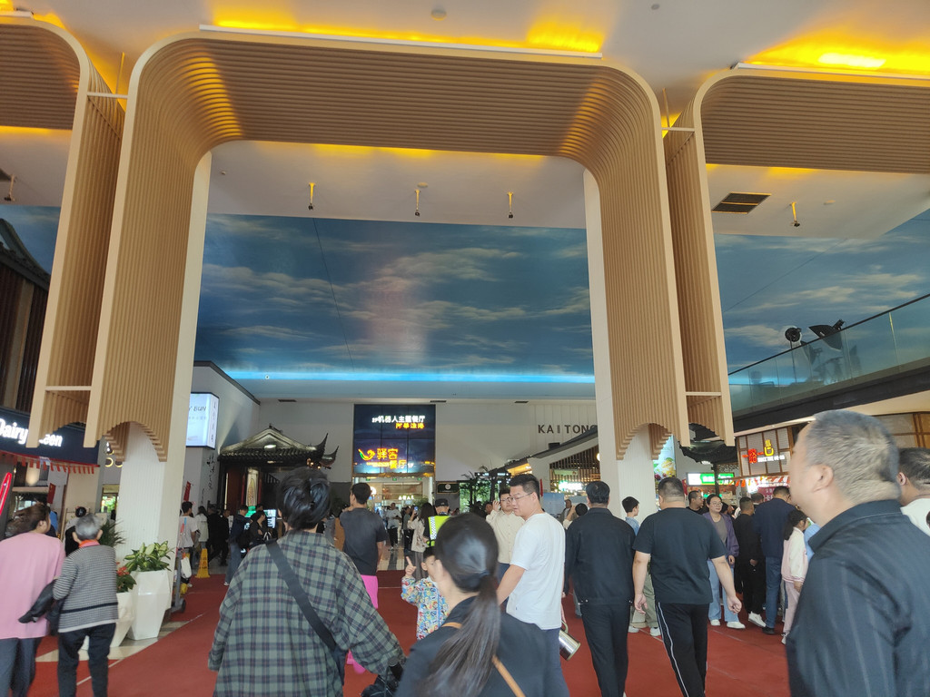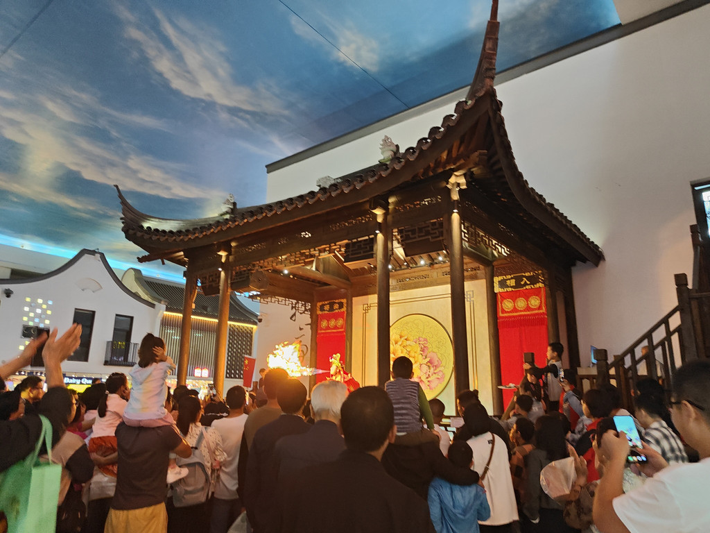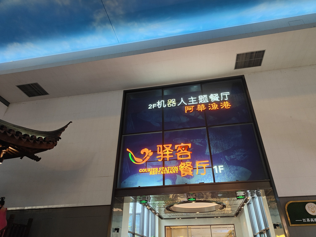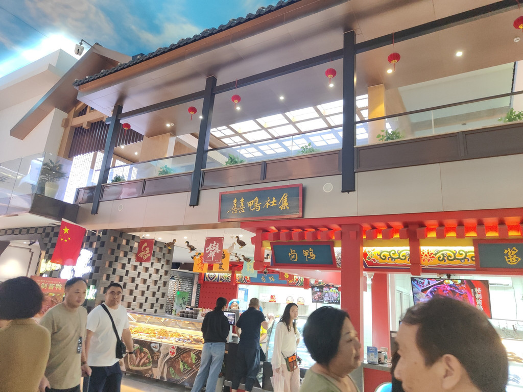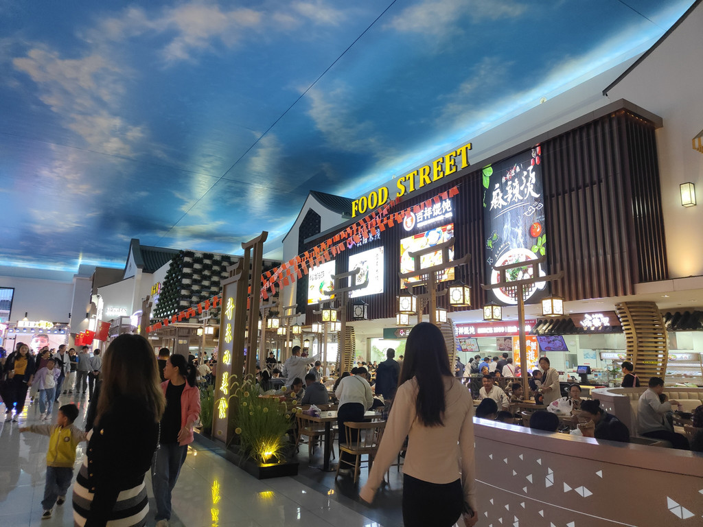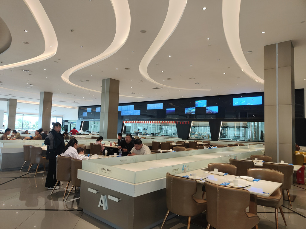 及至同伴终于“抢”到了一张桌子,我们已经看完了两段表演。我们点了吉祥馄饨新出的套餐,有点自嘲,在这里吃这种连锁小吃,也算是节假日的无奈选择了。其实楼上有机器人餐厅,那里的就餐环境相当好,而且由小机器人送餐,很有现代感。楼下还有水产市场,有阳澄湖大闸蟹。不过,今天我们就不要追求美味佳肴了,吉祥馄饨新出的蟹黄飞鱼籽味道也还不错。
