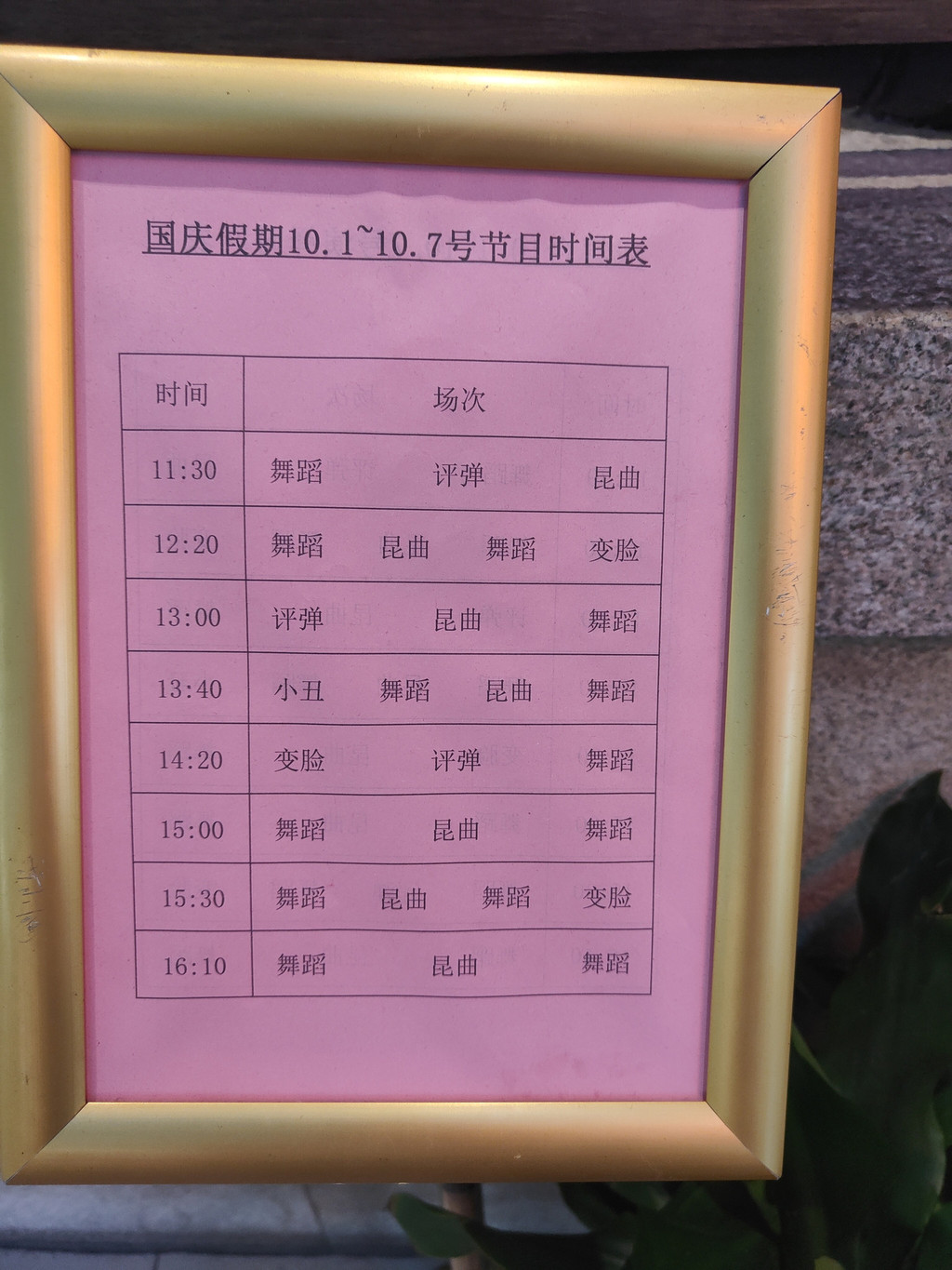 国庆假期期间,服务区的节目安排得非常密集,从11:30开始,安排了舞蹈、评弹、昆曲、变脸等各种节目,中间休息的时间并不长,差不多等于循环表演了。