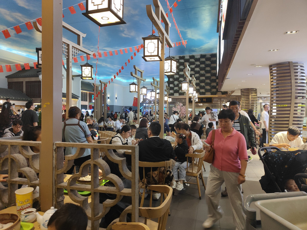 虽然我还想一鼓作气地把园林都逛完,但两位同伴坚持已经到了饭点,先吃完饭再逛。其实我们完全可以再逛一会儿,因为饭点儿的服务区人满为患,就餐区根本没有座位。