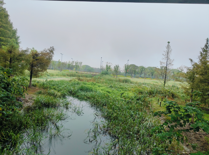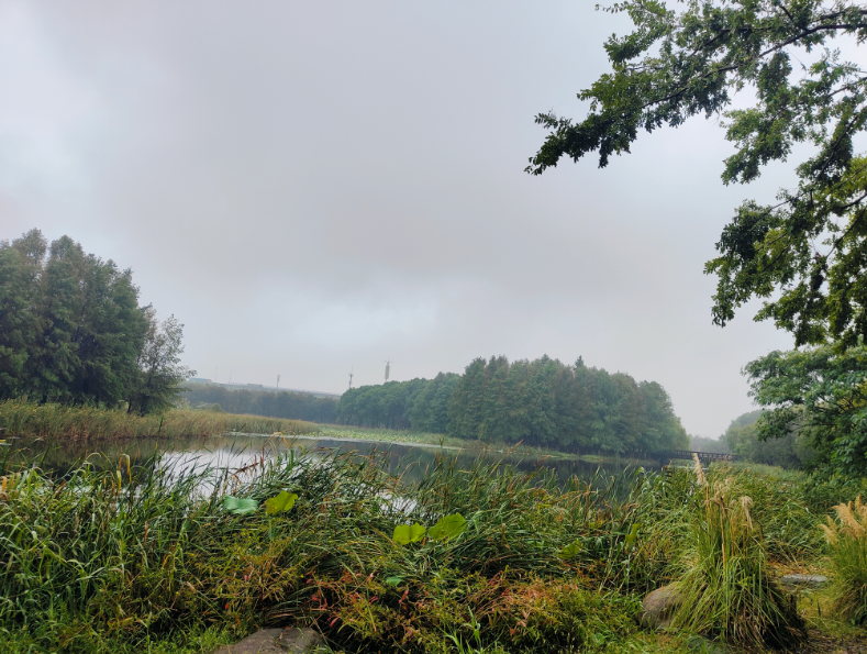 林外的植被很茂盛,有些自由生长的意思,大概都是一些本土植物,所以在这里长得有些疯了。即使没有阳光,单凭这一点雨露,也显出了勃勃的生机。在这里,听着雨滴打在伞面的声音,看着眼前的满眼绿意,偶尔会有一抹白影掠过,那是白鹭优美的身姿。安静的空气里,仿佛传来了大自然的呼吸,那样蓬勃有力,让人胸臆间都为之一振。