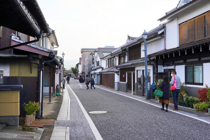 JR日田站徒步15分钟左右、骑行5分钟左右,便见到完整留存下了昔日江户风貌的豆田町。豆田町主要由两条南北向的街道构成,分别是御幸通路和上町通路,两条路之间又横贯有数条东西向小街。街道上宁静而古朴的氛围,让人联想到时间的流逝和昔日的辉煌。