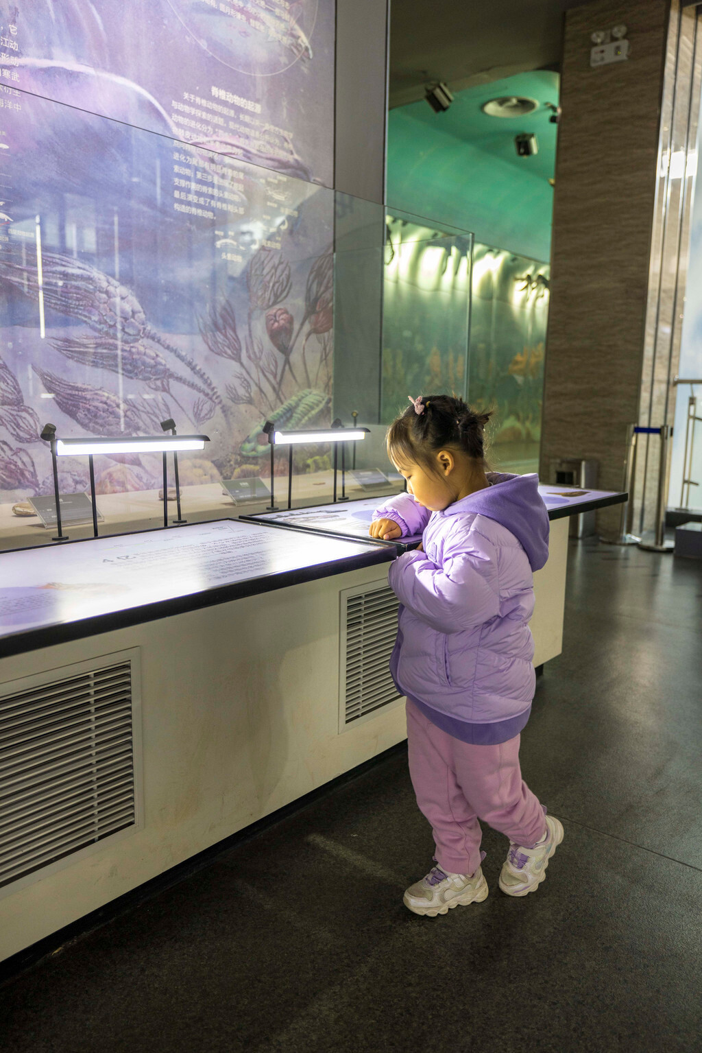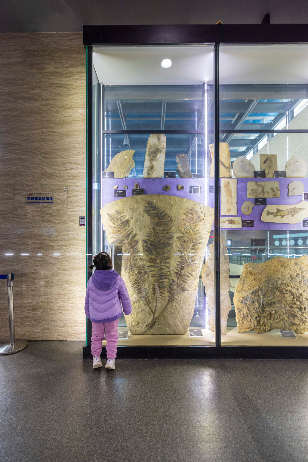 这里也展示鹦鹉龙、贵州龙等标本,这些恐龙大不过狗的体型,小则巴掌大小,不过这个区域的生动性低了些,陈列的高度和距离让哈妮这么大的孩子基本上看不见,有些有密集在一起,又少了很多远古的神秘感。