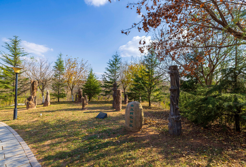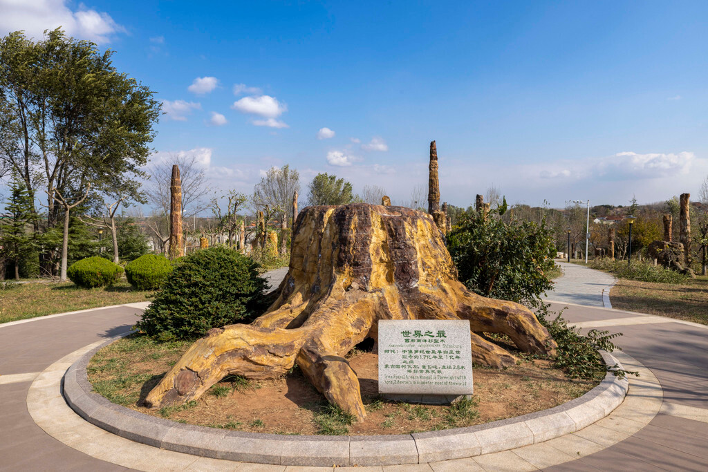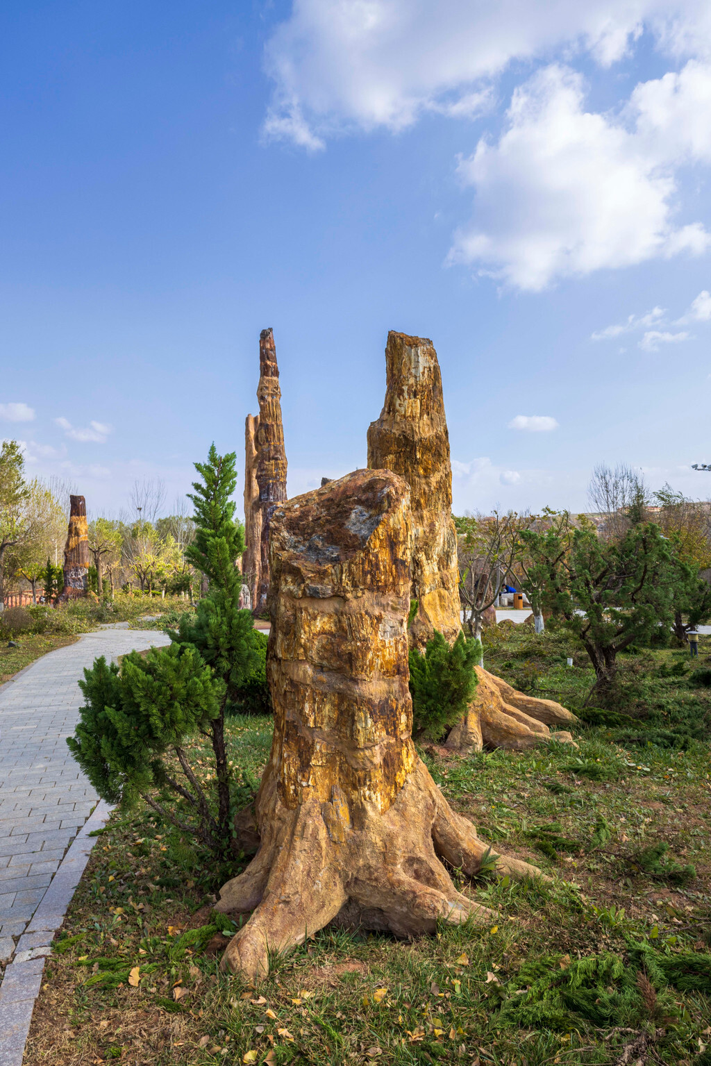 这里是目前世界最大的迁地保存展示树化石林,这里近400多株树木化石,来自中国、美国、埃及、缅甸、蒙古等不同国家。有一最粗的树化石,直径2.3米,和最高的树化石,高达14米。