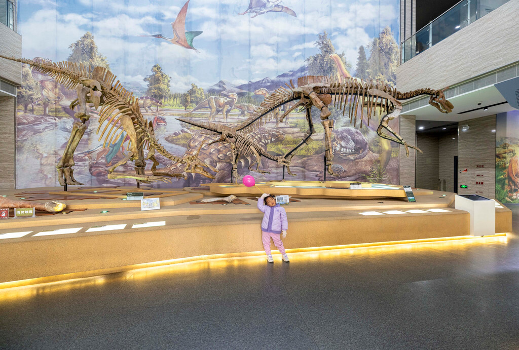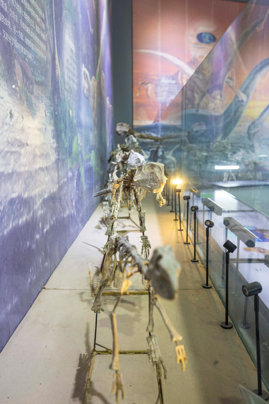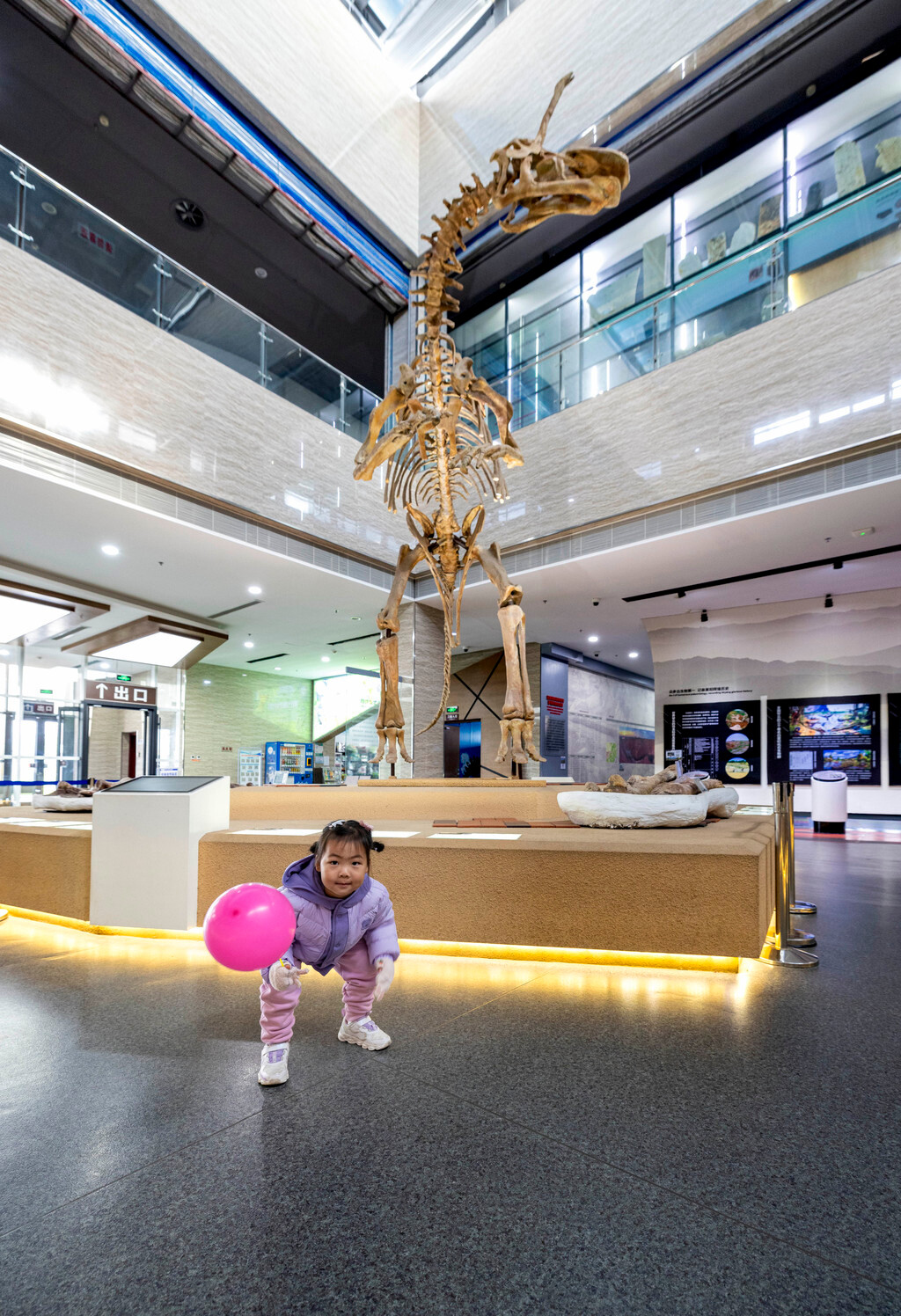 哈妮对骨架前展示着局部的骨骼,会问好奇属于哪个部位,为什么会变成这样等等。展馆另一只没有“犄角”的恐龙是杨氏莱阳龙,为纪念中国古脊椎动物学、古人类学的开创者和奠基人杨钟健教授而命名。莱阳这里也发发现几种恐龙,如果展馆内有棘鼻青岛龙或者其他恐龙的等比例复原模型以及环境复原等,或许这里会更吸引孩子。