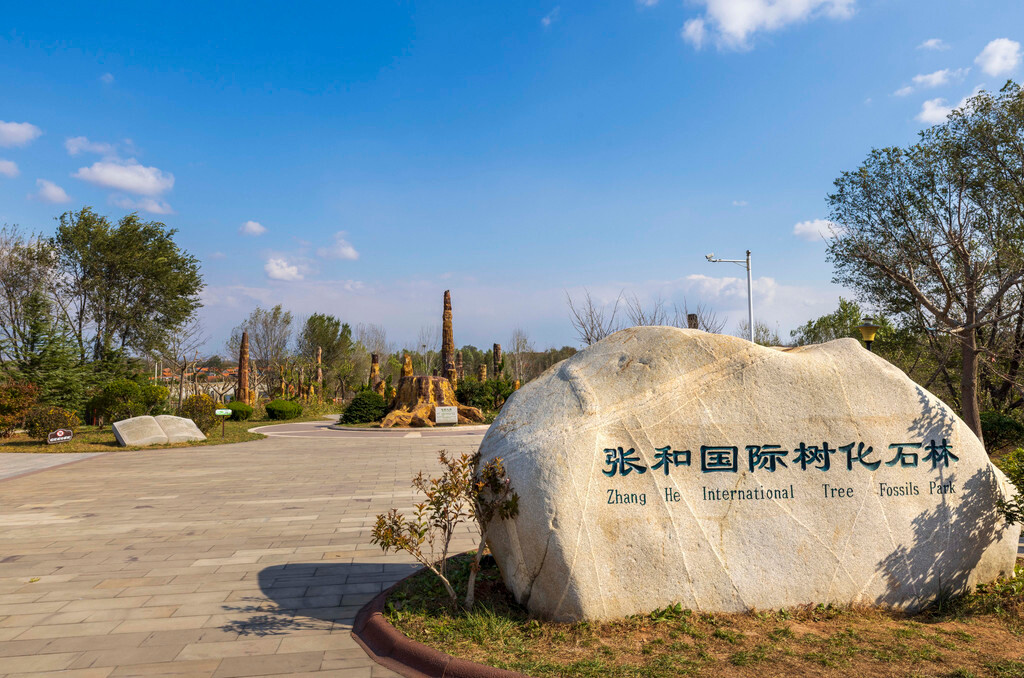 在白垩纪博物馆南边是张和国际树化石林,这片树化石林是由著名古生物化石收藏家张和先生捐赠的。