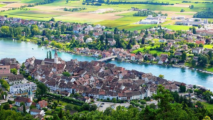 莱茵河桥是欣赏施泰因小镇和莱茵河的好地方,还可以望见山顶上的荷恩克林根城堡。当地的孩子,穿着游泳衣裤,正在练习跳水。他们爬上大桥的栏杆,然后纵身一跃跳进莱茵河。这里最好的观景点是山上荷恩克林根城堡,可是我因为赶路也因为劳累没有上去。