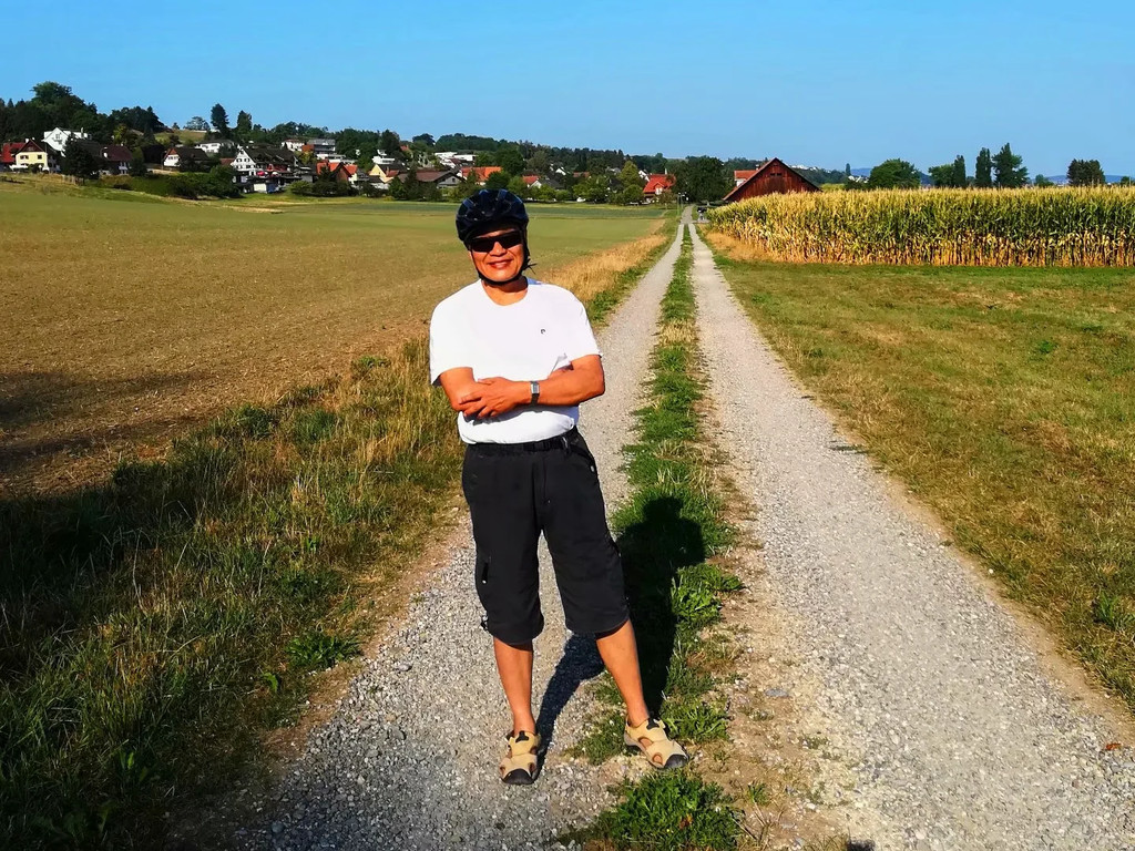 时而观看田野机械化农作和自动灌溉系统。时而欣赏摆弄游艇男人,收拾庭院的女人,嘻戏玩耍的孩童。我为这种完全不受时间限制,一切都自由自在骑行所陶醉。在瑞士,爱好自行车运动的人很多,都和我一样的装束,所以一个人的骑行也丝毫没有什么另类。