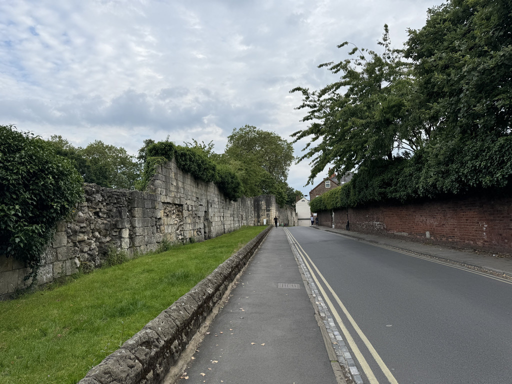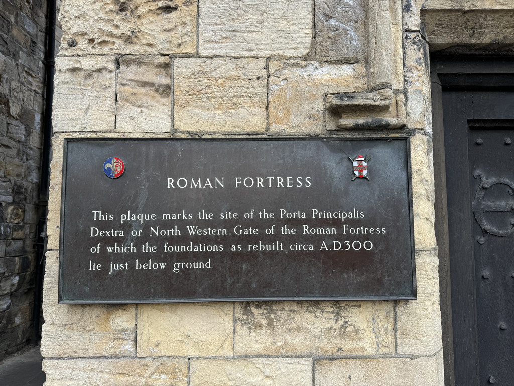 约克与罗马帝国有很深的渊源,曾是罗马下不列颠的首府。在这里我们可以找到古罗马的一些遗迹。约克城墙York City Walls是一座由罗马人建造的长达5公里的正方形城墙,作为防御外敌的屏障。从火车站进入市区就可以看到。城墙以约克大教堂为中心,绕城墙一圈大约需要2个小时。在约克,登城口被称为“Bar”,登城墙的入口包括北边的Bootham Bar和西南边的Micklegate Bar,还有东北边的Monk Bar和东南方的Walmgate Bar。游客可只走其中一小段,如约克大教堂附近的Bootham Bar到Monk Bar,在沿途可以观赏到约克大教堂的景观。York老城各处都可以看到历史足迹介绍的金属牌子,对游客很友好。