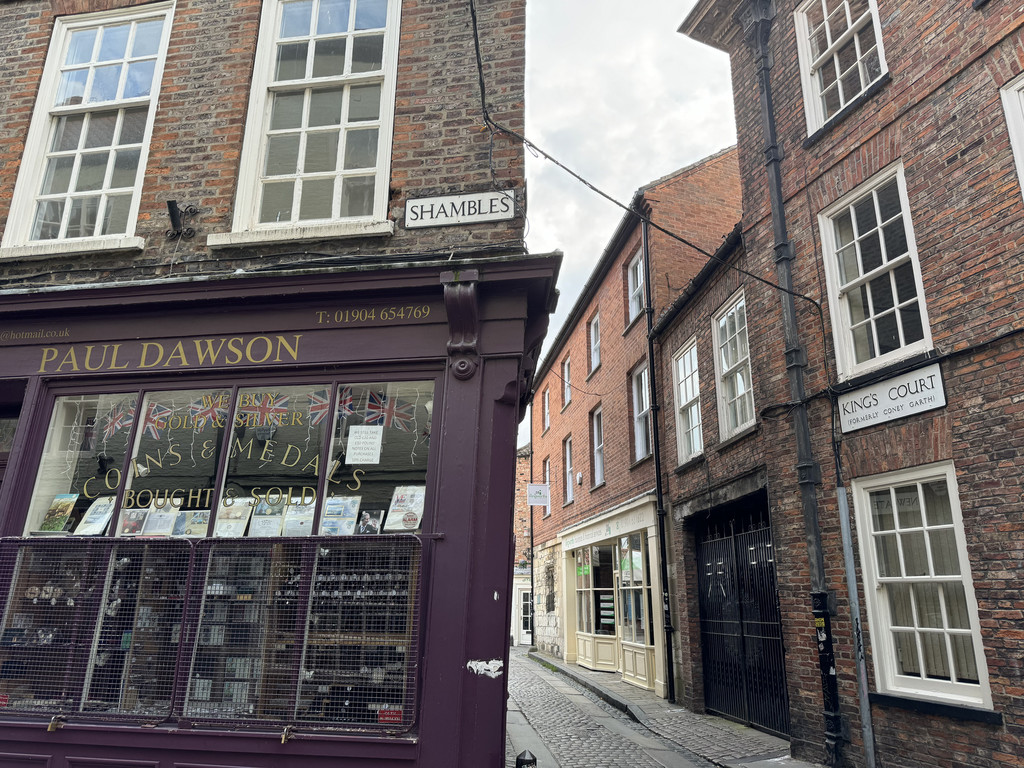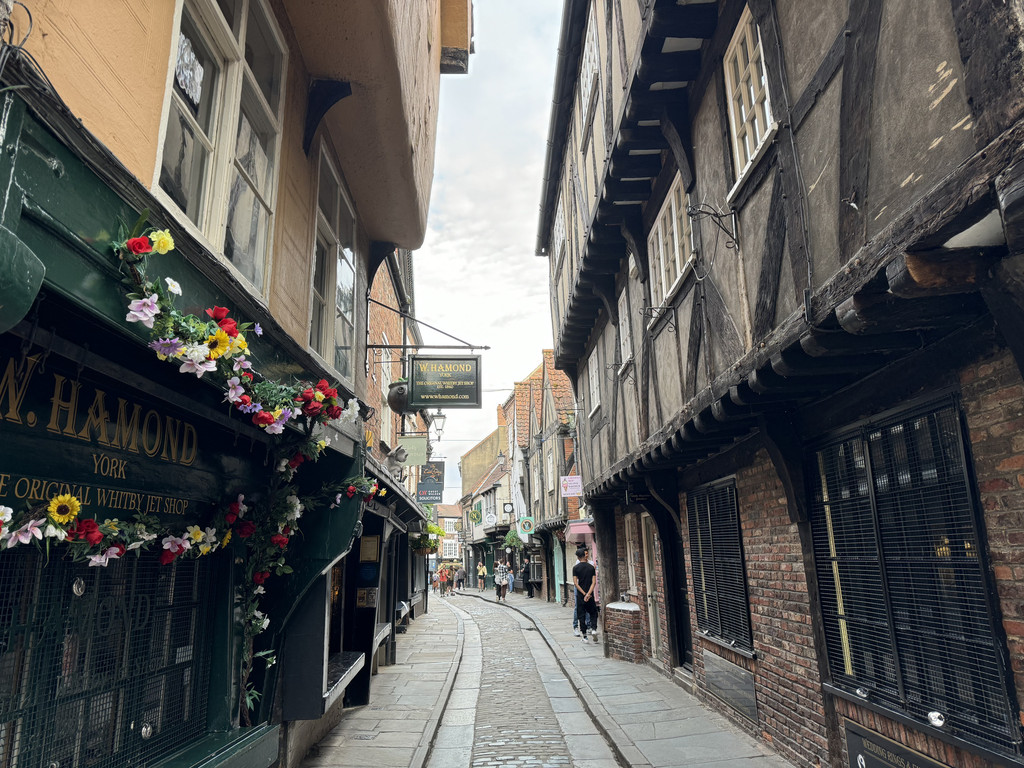 从大教堂一拐就到了著名的肉铺街-对角巷。”对角巷”的原型,就是约克这条The Shambels”肉铺街”。 这条街一定是所有“哈迷”们梦想探寻的一条街。在古约克城的众多街道中,这是历史最悠久的一条街,就算放在全英国,乃至全欧洲,这里也是保存最完好的中世纪街道。因为这条街此前都是肉铺,阳光下肉类容易腐坏所以特意把道路修的狭窄,肉铺街全年基本照不到阳光,夏季十分凉爽。我去的时候店门都关了,显然,店家不会因为生意爆火,人流爆多而选择延长营业时间。