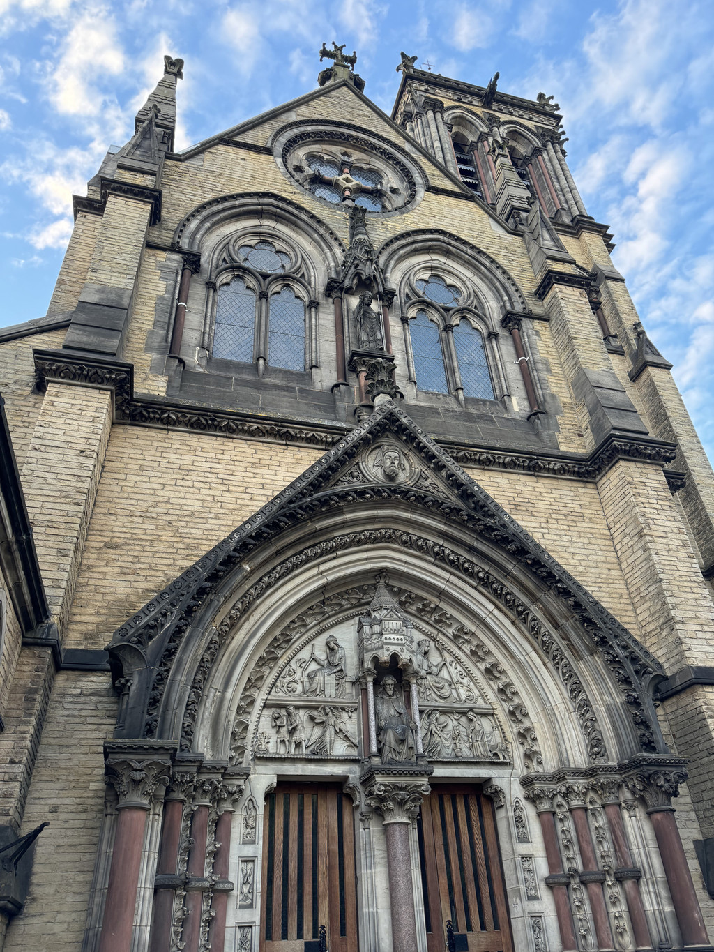 6月19日与女儿在湖区分手,独立乘坐约2个多小时的火车后,我开始在谢菲尔德的几个主要景点闲逛。从酒店步行几分钟就看到谢菲尔德大教堂。教堂是这座城市最古老的建筑之一,迄今已经有1000多年的历史了。大教堂的气势恢宏又充满了历史沧桑感,见证了谢菲尔德的发展历史。