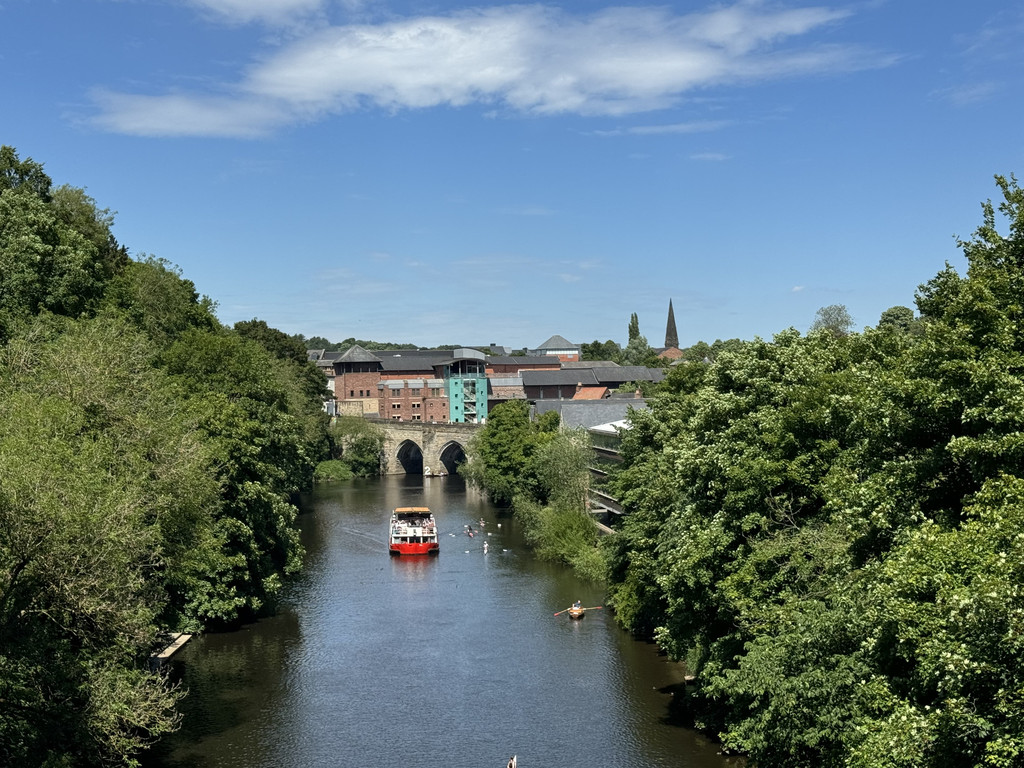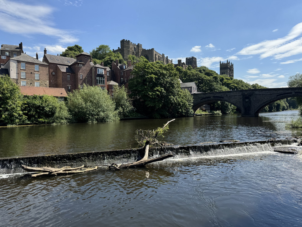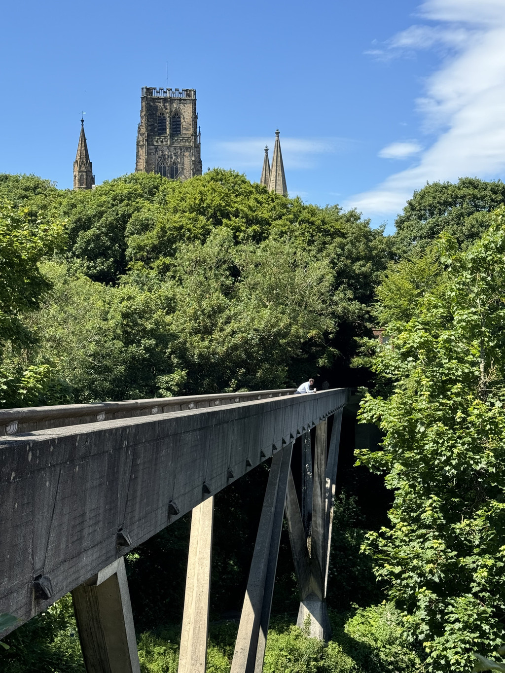 杜伦(Durham)坐落于英格兰东北部,从约克到杜伦的火车只要50分钟。杜伦火车站位于小城的最高点,一出站,整座小城的红砖绿瓦都在脚下一览无余。火车站步行过去市中心的时候,会穿越一座小石头桥,然后步入一条两旁铺满花草,树木繁茂绿意高耸入云的道路。可谓与世无争,依山傍水,风光绮丽。杜伦城堡和杜伦大教堂在这里蔚然矗立,威尔河(River Wear)缓缓从市中心蜿蜒穿过,被花丛簇拥着的房屋错落有致,散落在镇上的杜伦大学(Durham University)又无意为这里增添了几分人文色彩。