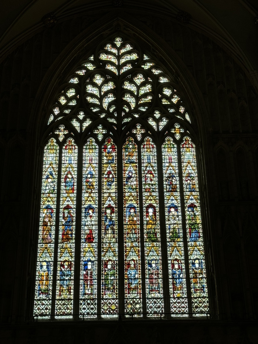 这也是世界上设计和建筑艺术最精湛的教堂之一,它拥有世界上面积最大的中世纪彩绘玻璃窗。有人说如果只能在英格兰参观一个教堂,那么来到约克大教堂一定不会让人抱憾而归。大教堂完全地继承了约克城市的气质——古典,大气,以及无以伦比的精湛。中殿的“大东窗”(Great East Window)是世界上最大的中世纪彩色玻璃窗之一。在历史上,约克大教堂曾经历了多次战争、破坏和修复。然而,“大东窗”在这些困境中奇迹般地保存下来,并成为了宝贵的文化遗产。南翼的“玫瑰圆窗”(Rose Window)也是约克大教堂著名的艺术品之一,是为纪念玫瑰战争结束而命名。北翼的“五姐妹窗”(Five Sisters Window)由五个相连的窗格组成,每个窗格都由许多细长的玻璃块组成。在大西窗的中央,有一个突出的圆形图案,象征着心脏。因此,人们将大西窗视为约克地区的灵魂,将其比喻为"约克之心"。