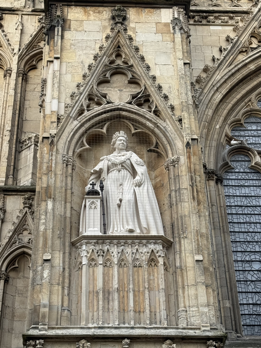 约克的大主教地位仅次于坎特伯雷大主教。约克大教堂 (York Minster),是欧洲现存最大的中世纪时期的教堂。当公众刚刚知道伊丽莎白二世女王的去世时,在悲痛之中就出现了一个问题:为英国历史上在位时间最长的君主建造什么样的纪念碑才合适?女王去世后首尊正式落成的雕像矗立于约克大教堂的入口处,并俯瞰着以她的名字命名的伊丽莎白女王广场。