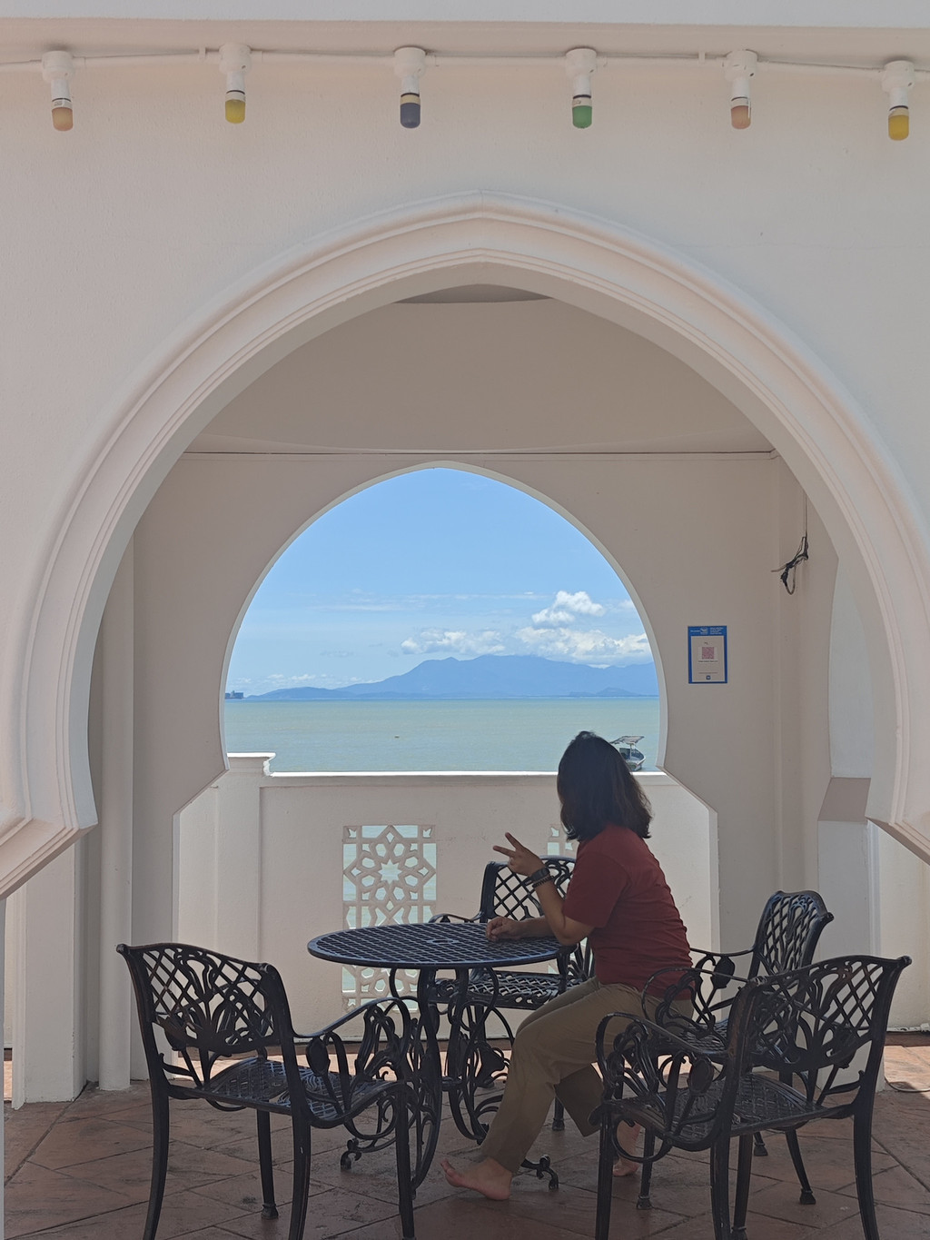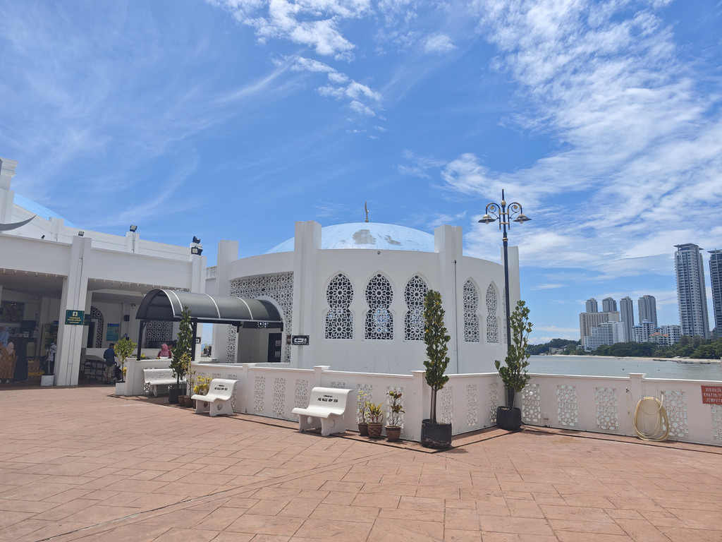 从帕都丁宜海滩结束后,去了槟城的水上清真寺。这个清真寺小小的,但是风景也不错哦。着装不合规没关系,登记一下,脱掉鞋,穿上他们的袍子就可以参观大殿了。大殿走出去能看到一片海,景色不错。水上清真寺逗留的时间不长,15分钟足矣。