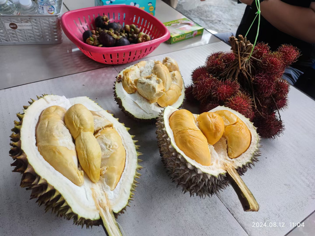 今日自行吃完早餐后,包车去了浮罗山背的一个靠马路的榴莲档口去吃了好几个品种的榴莲,挺新鲜的红毛丹。不过算上车程加上价格,我们觉得乔治双威旁边的大叔榴莲摊非常有性价比。不过去档口或者榴莲庄园的话,是可以看到榴莲树的,也算一个知识的闭环了。