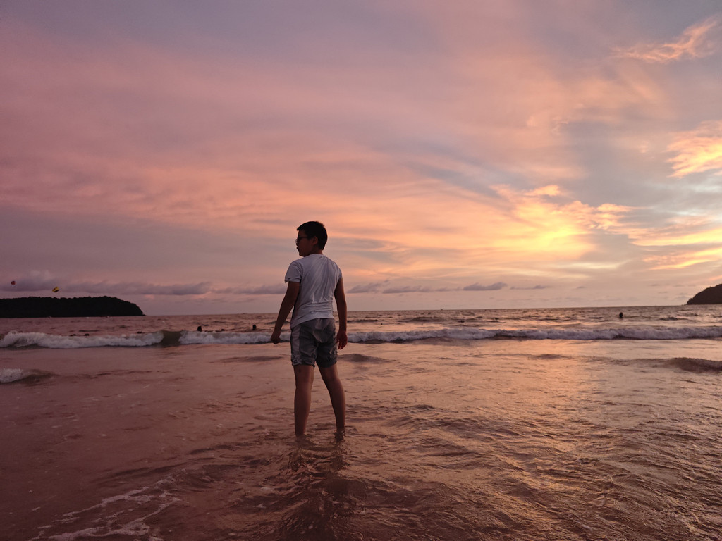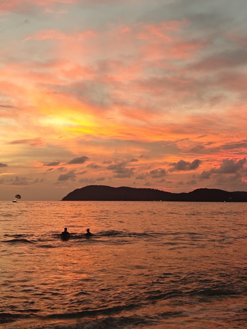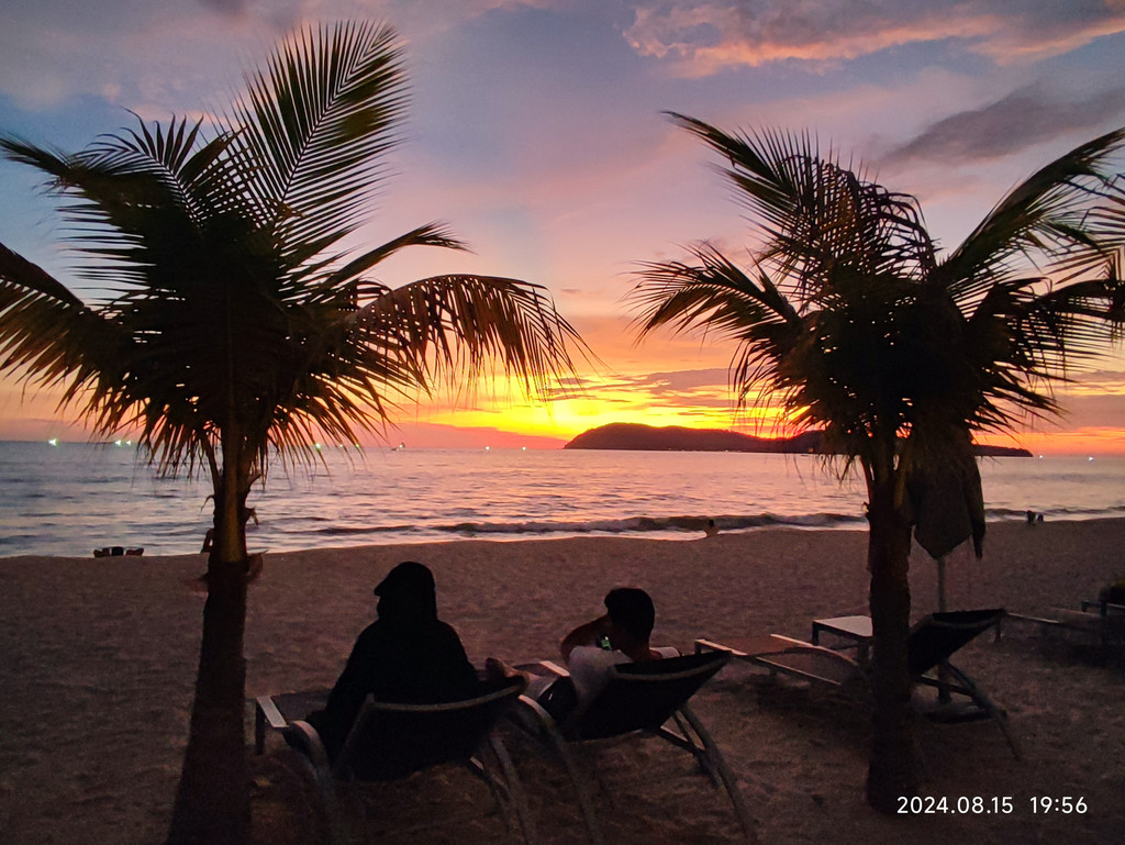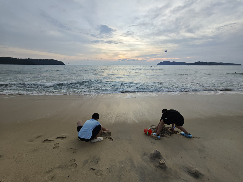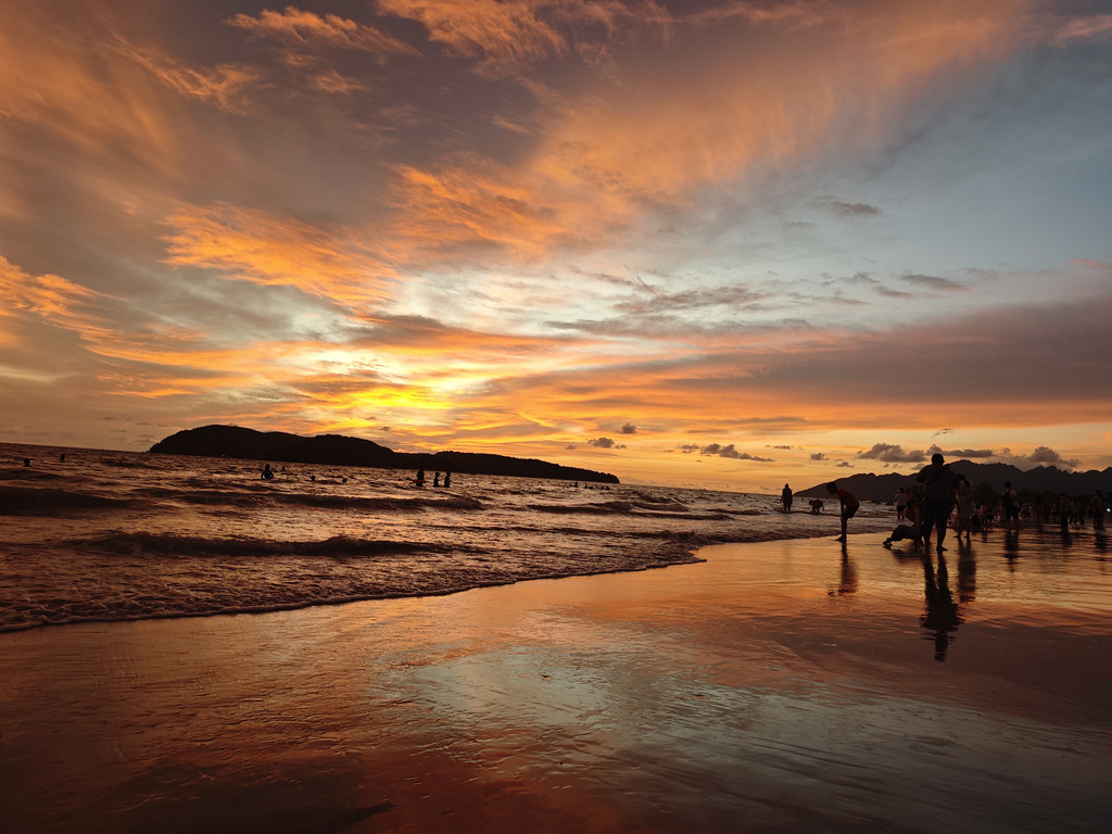 珍南海滩的人还是挺多的,这片沙滩上也有好几家老牌的高档酒店。不过相比我们的宾乐雅这个新酒店,这里比较吵闹一点。优点是这里离沙滩较近,离接地气的商圈比较近。附近有珍南商场,里面有很多平价的吃饭的地方。天色渐渐暗下来后,我们玩会儿后就回酒店了。