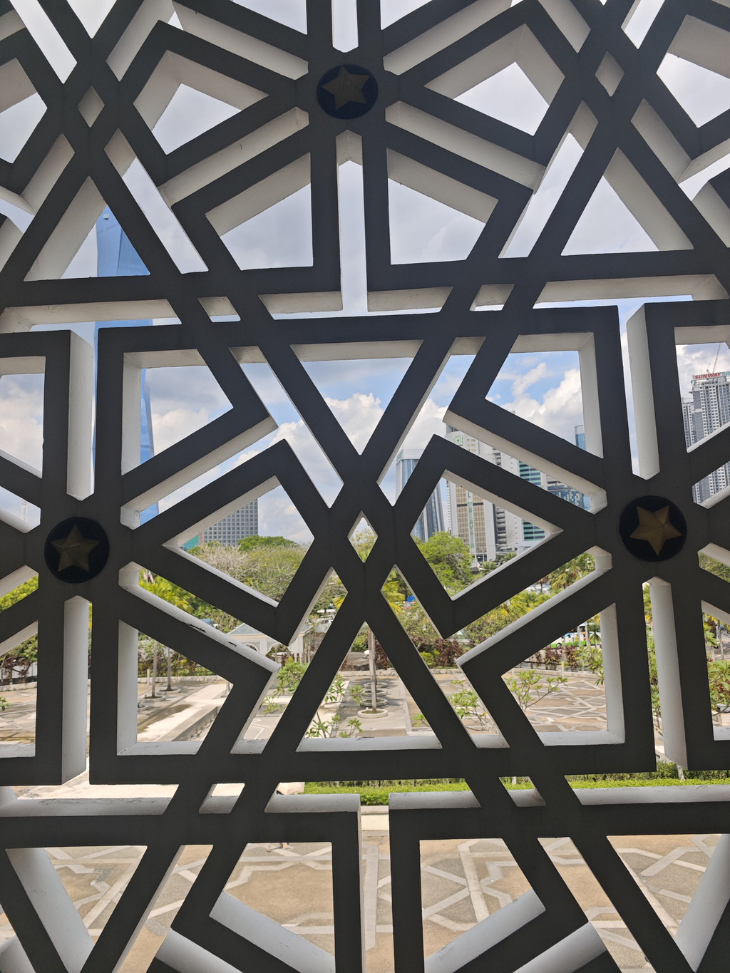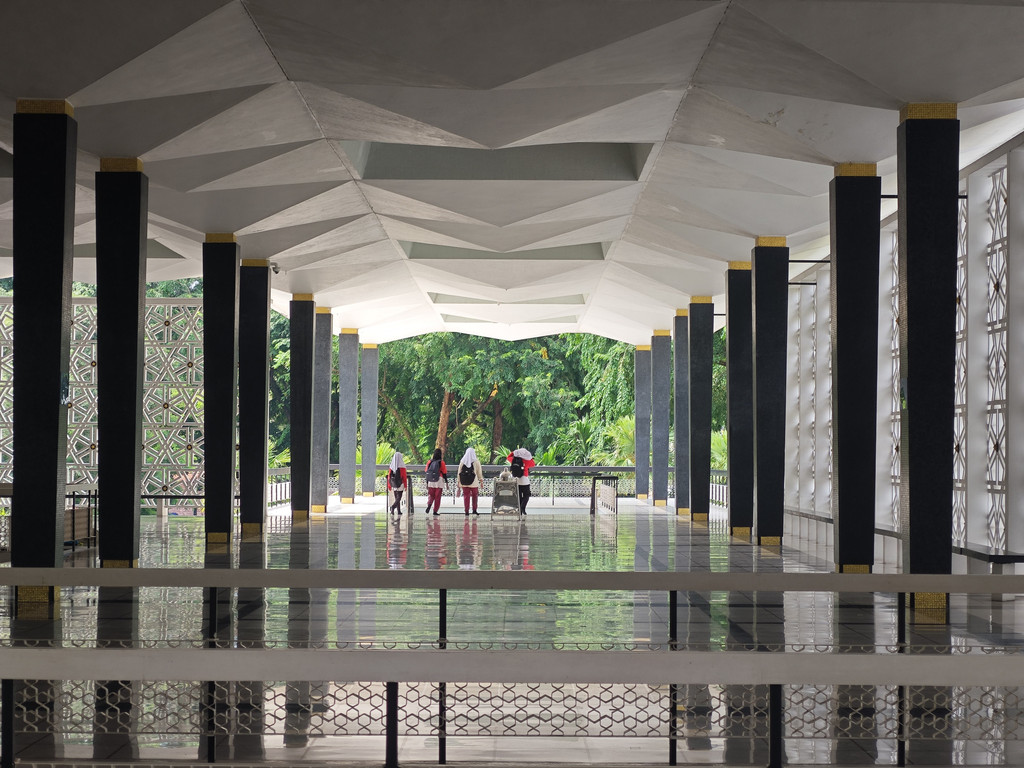 这一行,我们都进入的是位于吉隆坡的国家清真寺。男性穿短袖+长裤即可(男性可以露手肘),女性长袖(不能露手肘)+长裤+头巾(不露头发),如果当天不符合这样的穿着,每个清真寺都有袍子、头巾或者长裙让你套上。国家清真寺参观时间忘记拍照了,只记得周五是下午3-6点可以参观,其他时间上午也有时间段。