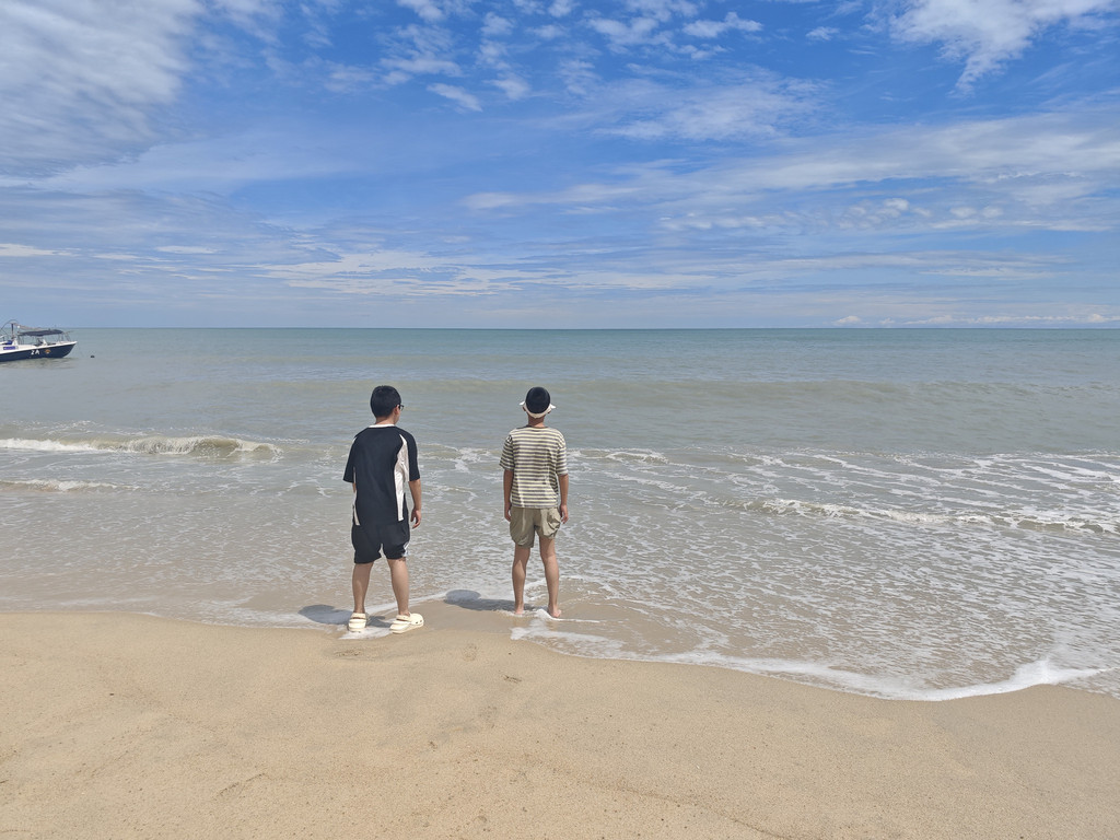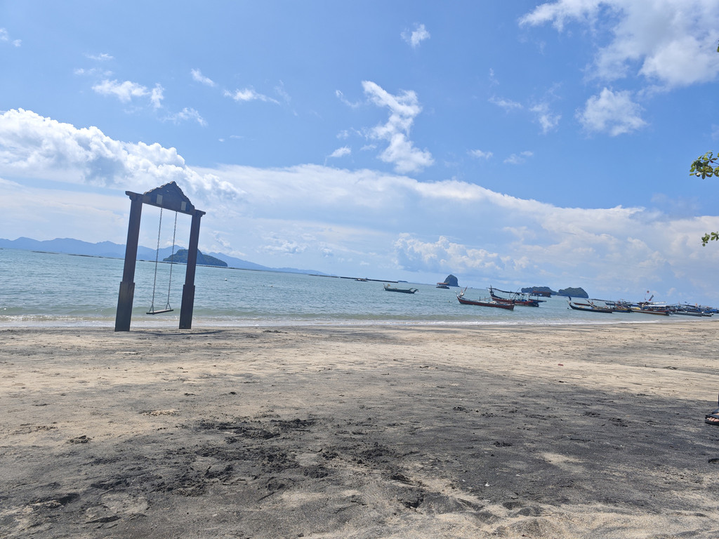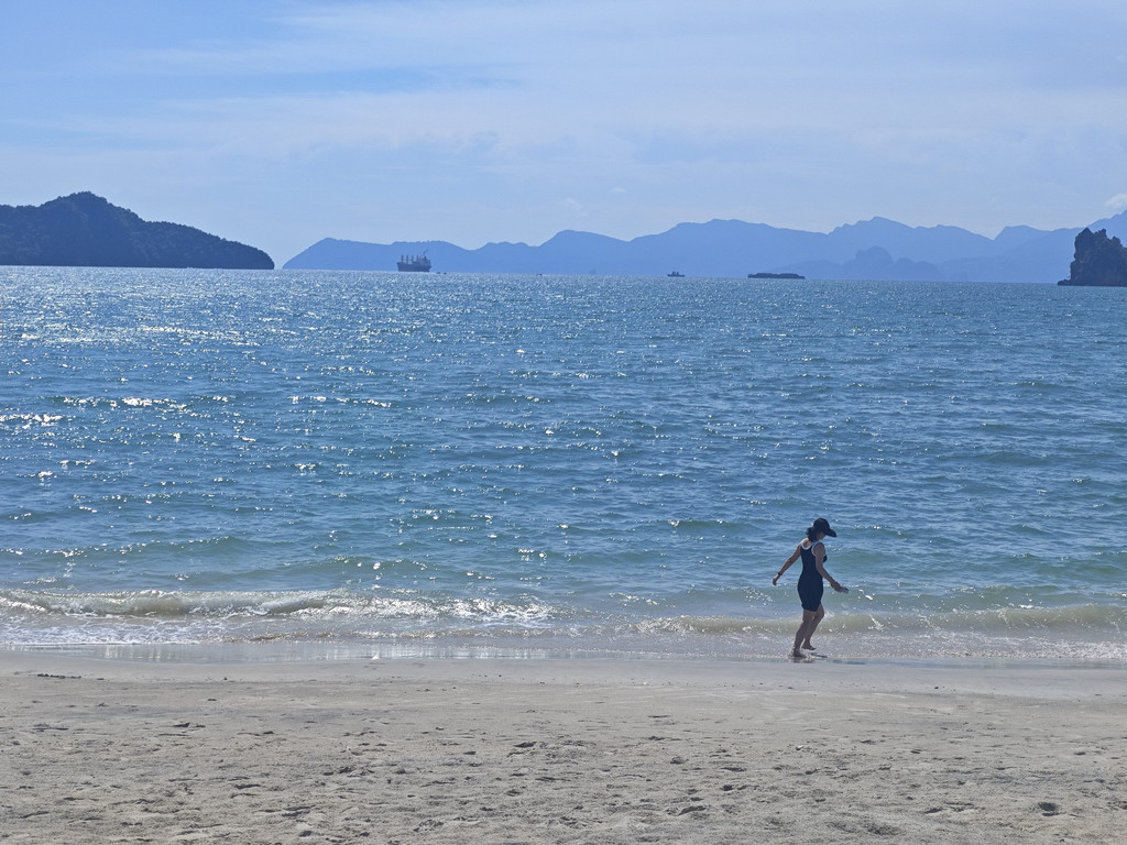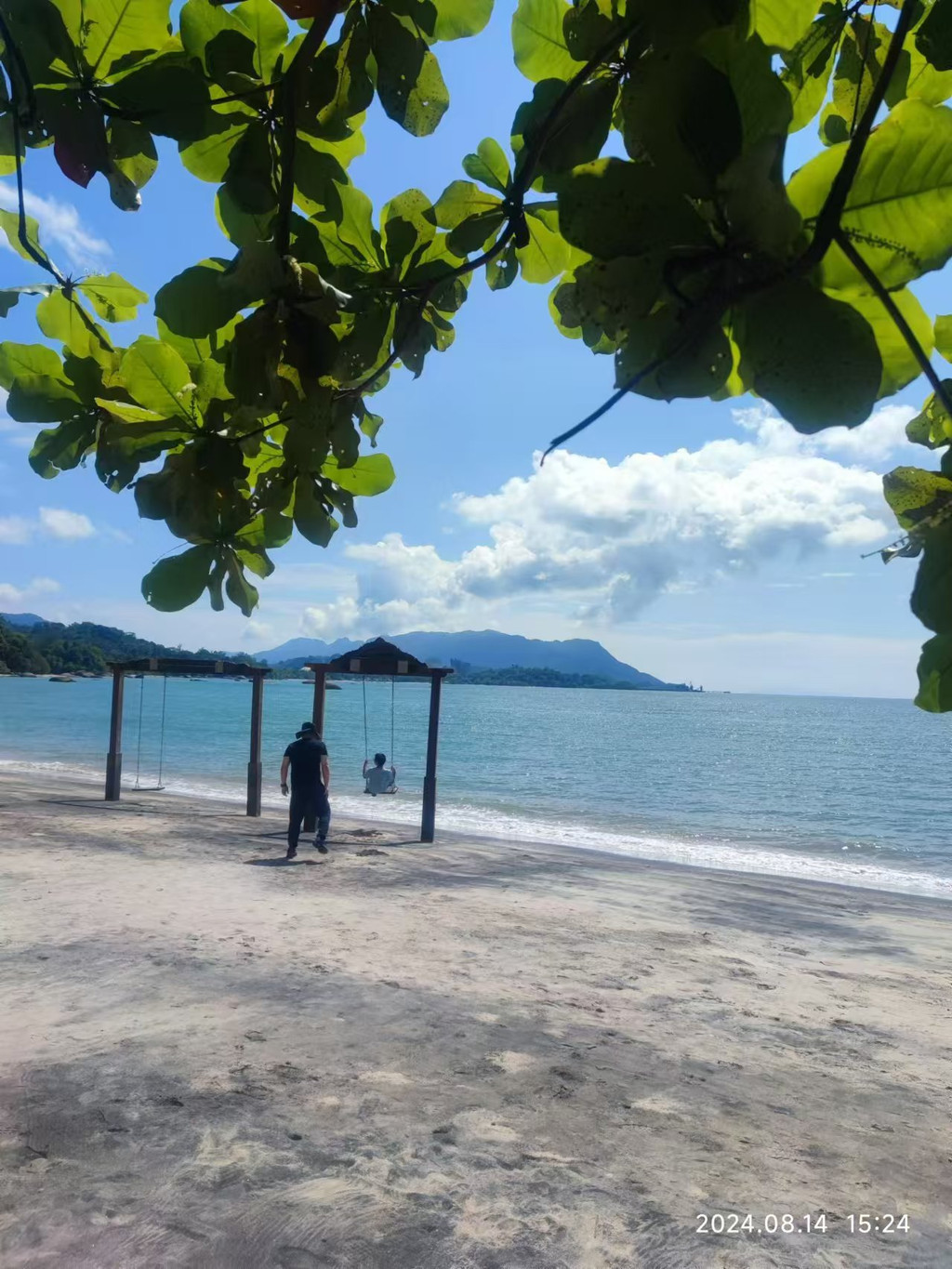 的确能看到沙滩的黑色,有很多渔船,很安静。海边有秋千,爱拍照的姑娘可以打卡。我们逗留了一下后,去了丹绒鲁雅沙滩,离黑沙滩很近。这里上厕所也是收费,1马币一人。丹绒鲁雅海滩算比较偏远了,但是这里的沙子很细腻,号称是兰卡威最好的沙滩。