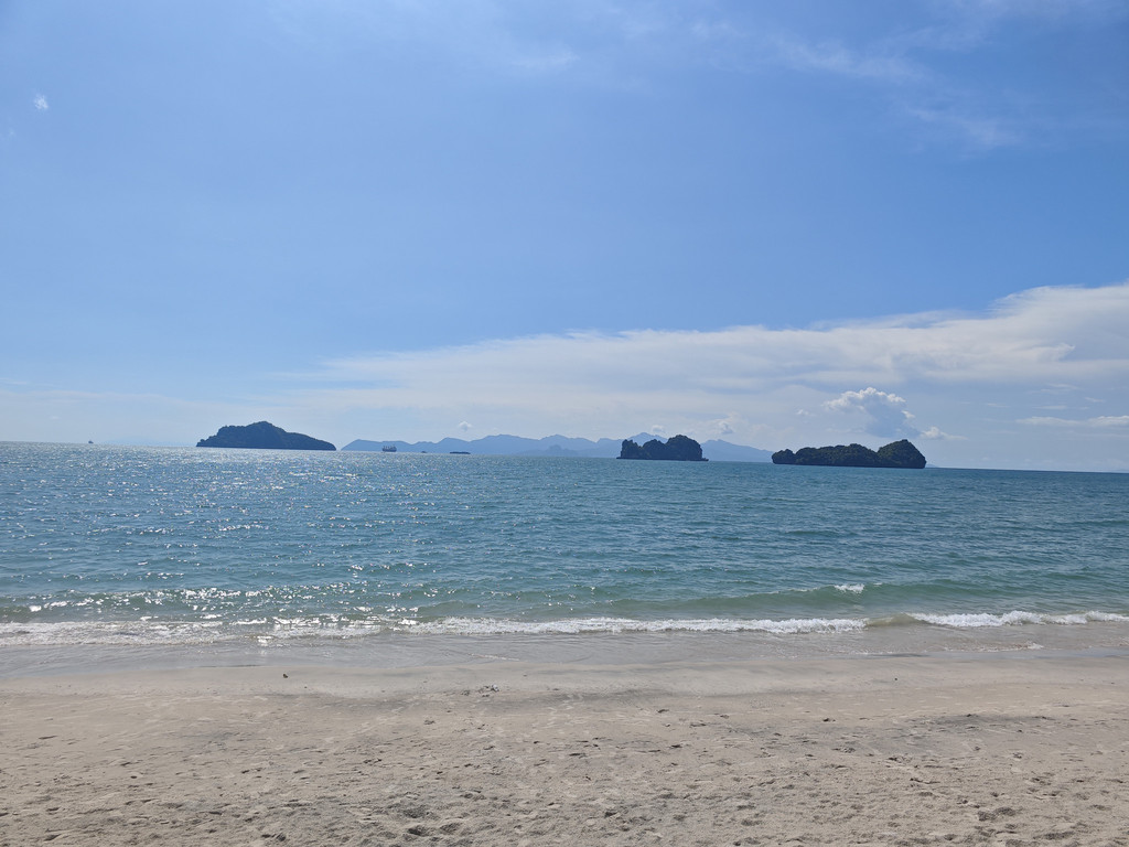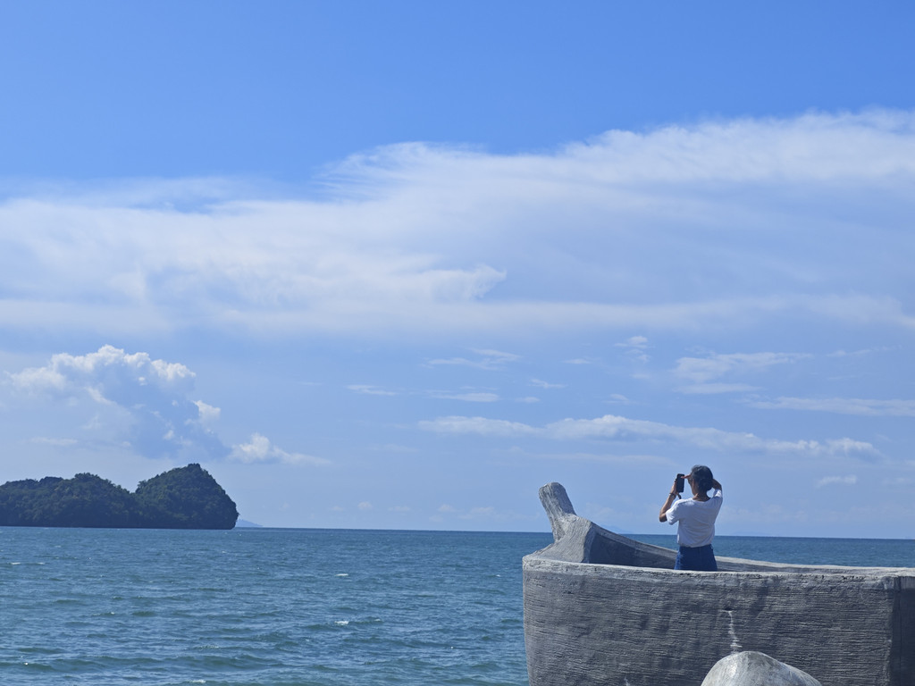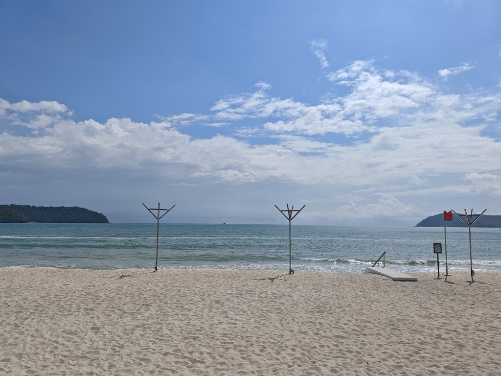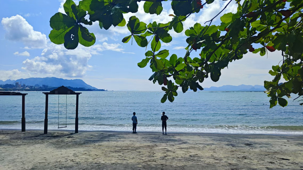 的确能看到沙滩的黑色,有很多渔船,很安静。海边有秋千,爱拍照的姑娘可以打卡。我们逗留了一下后,去了丹绒鲁雅沙滩,离黑沙滩很近。这里上厕所也是收费,1马币一人。丹绒鲁雅海滩算比较偏远了,但是这里的沙子很细腻,号称是兰卡威最好的沙滩。