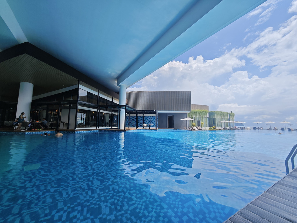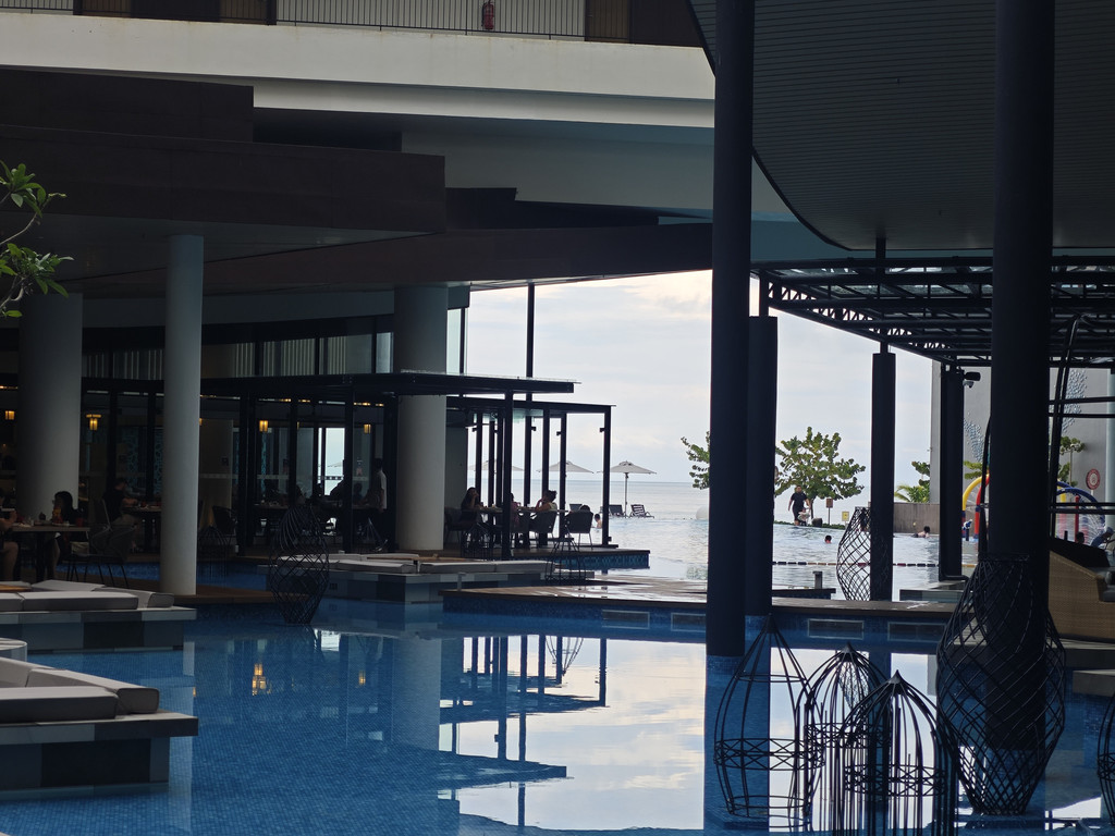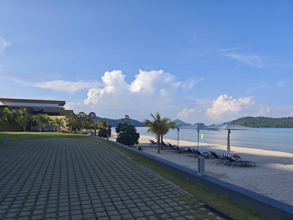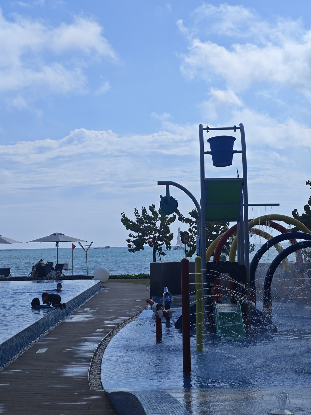 今天无行程,就准备窝一天酒店。早上醒来后,去吃了早饭。早上的5楼无边泳池还没什么人,成人可以在这里坐会儿、游泳、晒晒太阳。酒店的沙滩没有珍南海滩的细腻,但是人少啊,拍照好看呀!