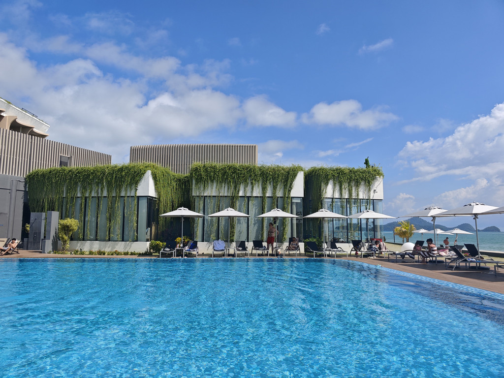 在兰卡威属于非常新的酒店了,坐落在珍南海滩步行10分钟左右的地方。这是一家适合度假的酒店,没有中文服务,酒店服务员多以马来人为主,mini吧里的饮料是一次给付,哪怕住3晚也是免费提供1次。酒店有2个游泳池,5楼的成人泳池很不错,是看日落的绝佳地方,喜欢美美地拍照的想必肯定不会错过。一楼还有亲子游泳池,面朝大海,顶部有露天的部分也有遮阴的地方,很受小朋友们的喜欢,可以玩很久。自助早餐很不错,选择非常多。这个酒店严格地收了每成人10马币/每晚的官方旅游税标准。入住只收取了4个护照进行登记(定了4间房)。