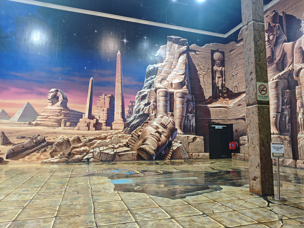 首先必须要走入的是底下的东方村,买的套票是包含了3D艺术馆的,这个属于室内,挺适合避暑的,脱鞋进入。走出3D艺术馆出来后,去排队坐缆车啦。缆车坐足6人。一共有2个可以下来的地方。第一程下来后有个观景台可以拍拍照,看看风景。再坐第二段到达最高处,这里有个小食馆。不得不说,这里虽然说起来是景区吧,吃的东西不贵又好吃量又足。