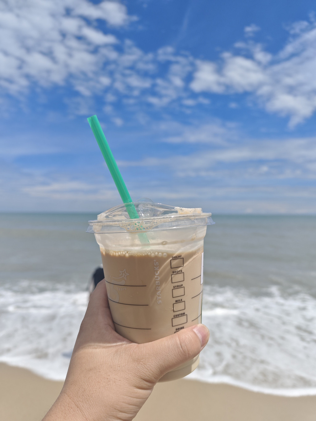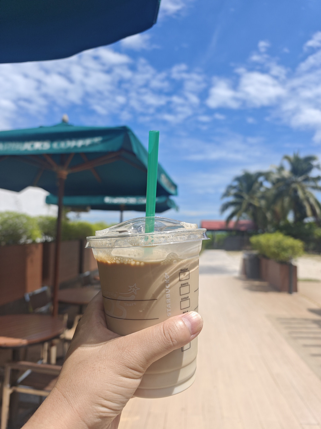 从浮罗山背下来,我们去了帕都丁宜海滩,是从星巴克进的。这个沙滩没什么人,海水很干净,推荐,但这个海滩离老城区还是有点距离的。这里的星巴克算下来比国内要便宜,星巴克人也不多,有条路直通这片沙滩,上岸后有冲脚的地方。