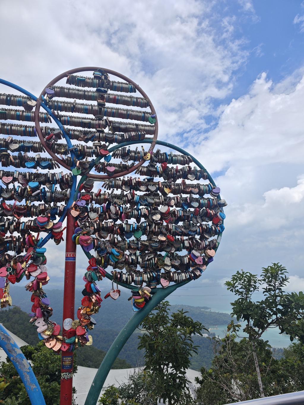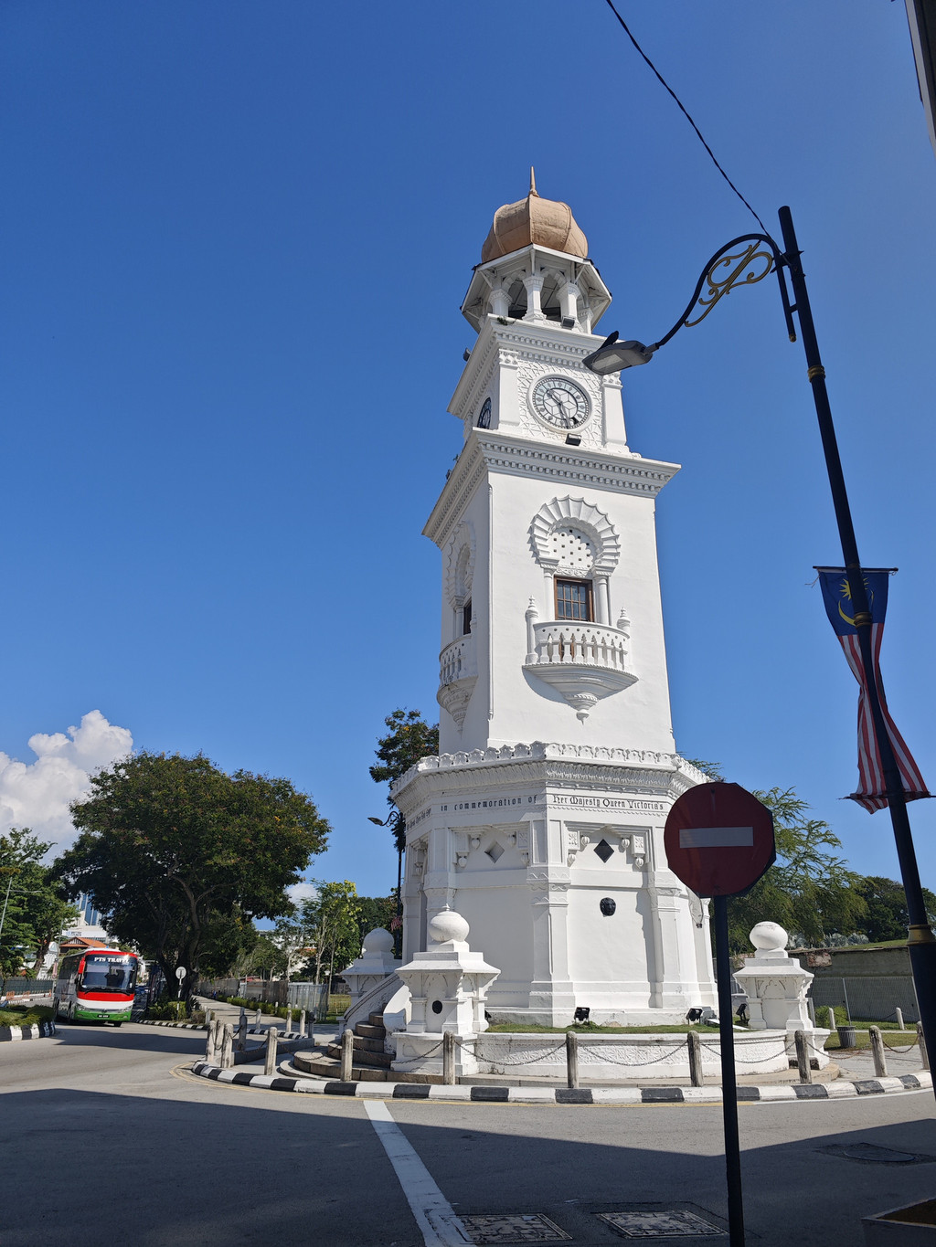 吃完后去了极乐寺,嗯,怎么说呢。看看就好,可能国内很多寺庙都要宏伟和有故事很多,这个我个人觉得规模也不大,也许在槟城算很特别了。免费,也有观光车可以坐,但是建议走走就可以了。我们因为要去升旗山,所以极乐寺就看了下就走了。极乐寺和升旗山离得不远。升旗山主要是要做小火车上去,小火车也会排队。这里买票我是现场买的,都有明码标价,工作人员都讲英文,没有华人。也可以在大马的KLOOK客路旅行APP上买,但依稀记得没有那么大的差价。了解升旗山的渊源,其实也是一部这个国家的屈辱史。晚上我们吃了酒店楼下的夜市和周围的小店的吃的,还吃了榴莲王朝的榴莲。来之前看攻略说新关仔角的夜市比较出名,多少号的摊位非常值得一去。也许是身体累了,也许是年龄大了,也许是因为带着小孩的中年人懒惰了,我们并没有激情“千里迢迢”去夜市打卡,就很随意的去了楼下这个小夜市。其实摊位也很多,某书上也有介绍一些炒粿条的摊位等等,甚至还排起了长队,我们也去排了,要了炒粿条,的确好吃,12马币一份炒粿条,有好几个大虾,值得推荐。还有蚝煎也很不错。