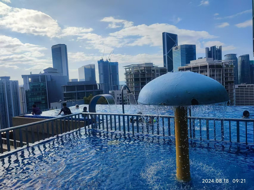 步行至KLCC双子塔大约8分钟左右的路程,晚上挺安静的,酒店楼里的望出去的城景挺不错。KLCC商圈附近其实有很多的酒店公寓,思来想去我们人多,又是第一次去马来西亚,所以还是选择了经济型的连锁品牌。酒店服务员各个民族的都有,但貌似都会说中文。这是全程唯一一个跟我们用中文办理入住的酒店,收取了每晚每间10马币的旅游税。酒店也有一个游泳池,小小的,但不如网上有些酒店公寓呈现出来的照片那么美,这个酒店的泳池没有很正对着双子塔,只能说是看得到双子塔而已。这个酒店是此行将我们9个人的护照都复印了信息的,着实太不容易了。之前2个酒店我们甚至都主动询问是否要将所有人的护照都进行登记,得到的信息都是just 3/4 OK。吉隆坡宜必思即使复印了所有人的护照信息,每一个房间里的人还是没有一一对应也没有主动询问我们入住人员分配房间的方案。