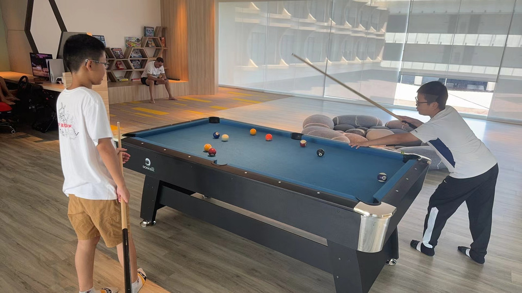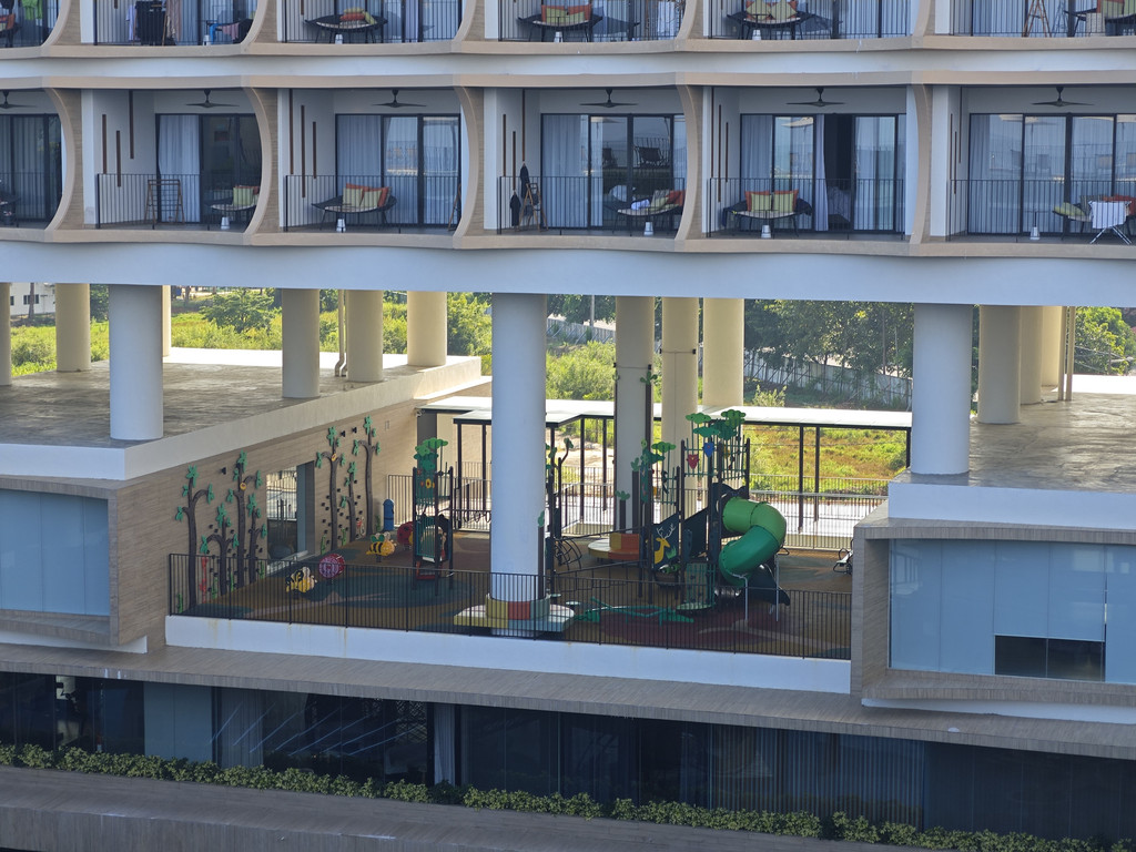 有专门的酒店服务人员管理的,里面有游戏机、乒乓台、绘本阅读的地方。旁边有室外但遮阳的儿童滑滑梯等等,也可以玩很久,还不晒。