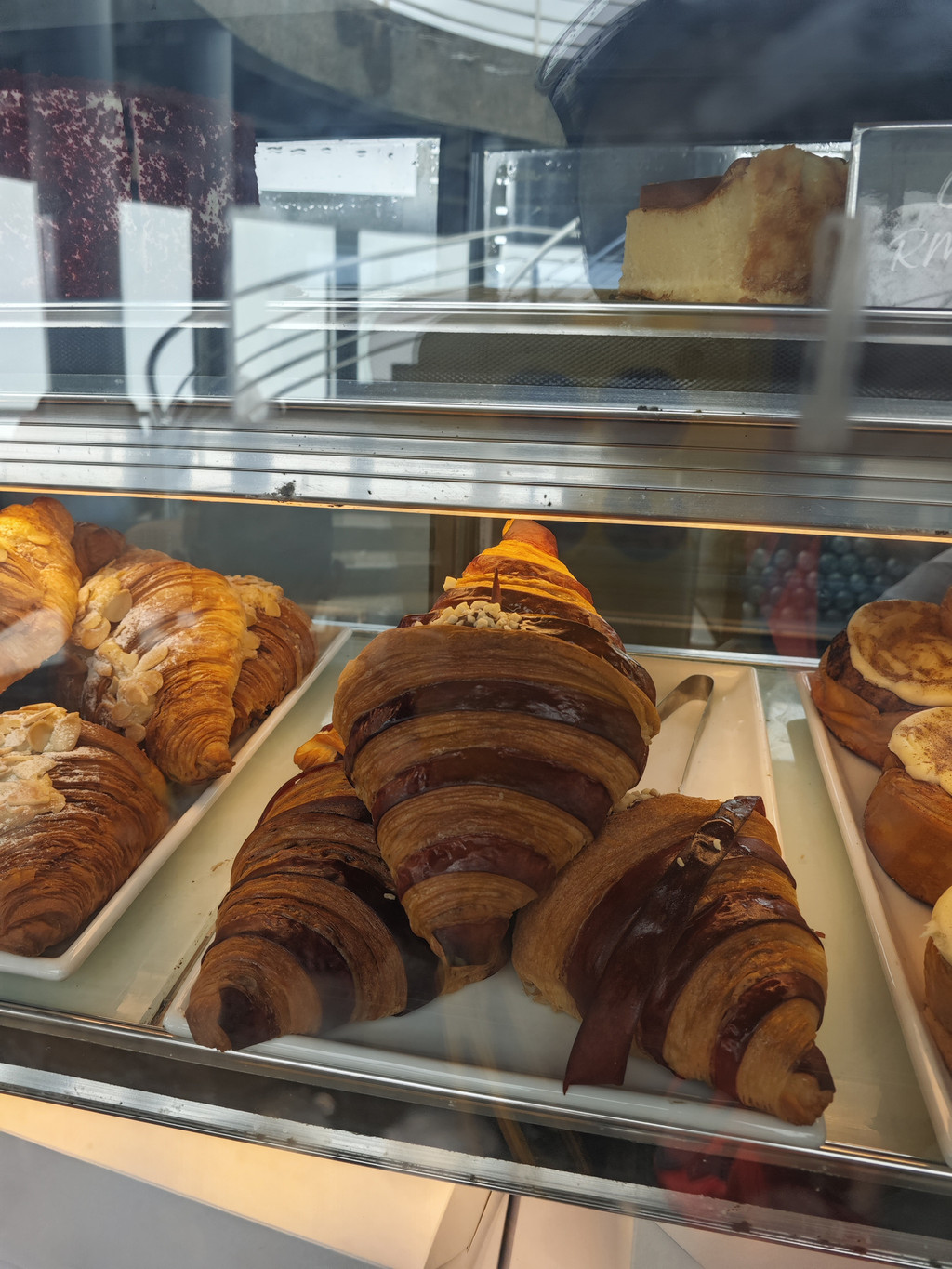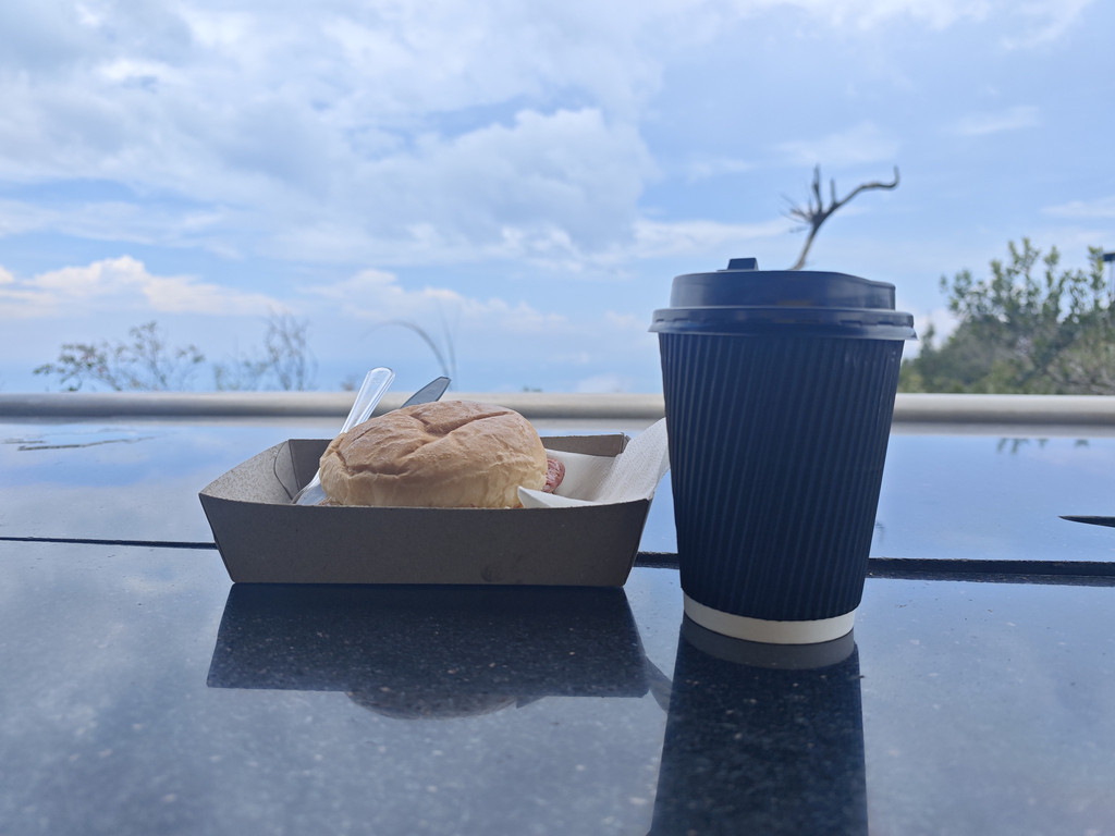 之前在3D馆出来后,我们给两个少年买了汉堡套餐,量很足且好吃且不贵。到了上面后,天看着要下雨的样子,我们就暂时避避雨,几个大人就买了三民治、可颂、拿铁等补给一下,就当今天的午餐了。