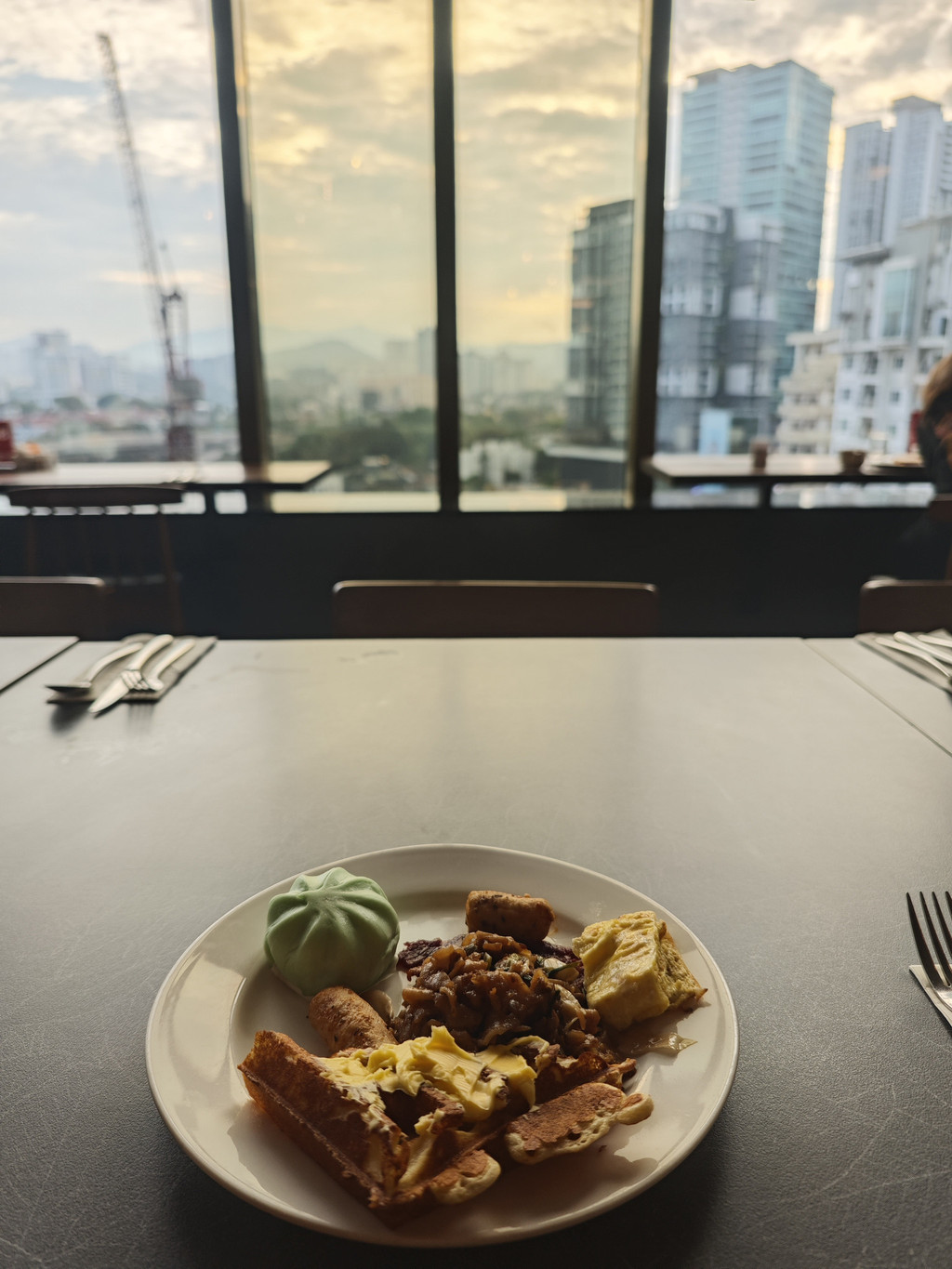 说来也是巧,以前上海到槟城是没有直飞的,从2024年7月1日起,上海出发就有直飞啦。17点30的飞机,我们提前了3小时到达浦东国际机场。其实出发前还是有点紧张的,毕竟要带一大家子人出国,本次出发是一共9个人(7大2小),作为本人也只是第二次出国门。虽然国际出发不用像国内一样有时是H登机口的时候要走到天荒地老,但是因为出境也是要花费点时间。依稀记得到达登机口的时候大概还有1个半小时还是有的。飞机起飞后,吃了飞机餐,在飞机上换了马来西亚的手机卡。5个小时的飞行倒没有想象中漫长。落地后,排队出关,将准备好的纸质资料(入境卡、全程飞机订单和酒店订单)和护照交给官员,根据工作人员的指示拍好照片和录入两个手的食指指纹就可以了。非常简单地把行李过了一遍安检就出去了。根据指示找了ATM机取马币,因为国内没有兑换马来西亚马币的业务,所以如果需要现金可以下了飞机在机场找ATM机换。槟城的ATM机在出口右手边有个扶梯的后面,有ATM机的文字提示。我选了个黄颜色的机器进行取款,因为小伙伴有说看到有笔记里提到黄色机器的银行汇率低,好吧,那就冲呗!用国内的银联借记卡就可以,可以在出发前跟银行确认一下境外取款的手续费等规则。虽说有中文语言提示,但是没有提示你一笔钱最多取多少。也不知道是不是哪里看到过什么,后来我就再试着取了1500马币,果然可以。有一点一开始有点慌是因为,受理了业务后,卡先退出来了,钱要过几秒才出来,那时候的几秒稍微脑子有点空白。取了我们一行人预计要用的现金后,就找到我们事先联系好的接机司机送我们去酒店啦。我们预定的是槟城双威乔治市酒店,到达的比较晚了,本来酒店旁边就有小小的夜市的,也都全部关闭了。还好不远处有家24小时的HAPPY超市。这个酒店评价上看是有中文服务的,但是很晚了,晚上值班的是一位印度裔的女士。非常简单粗暴的交流后,我们在付了旅游税(预定时已包含)和遗产税(3马币每晚每间)后,我们就去洗洗睡了。