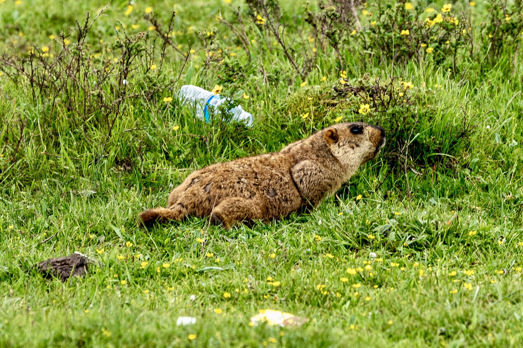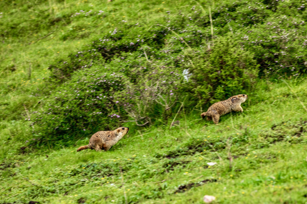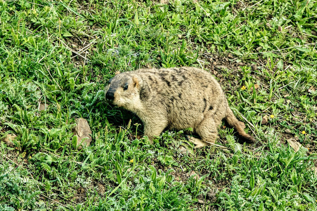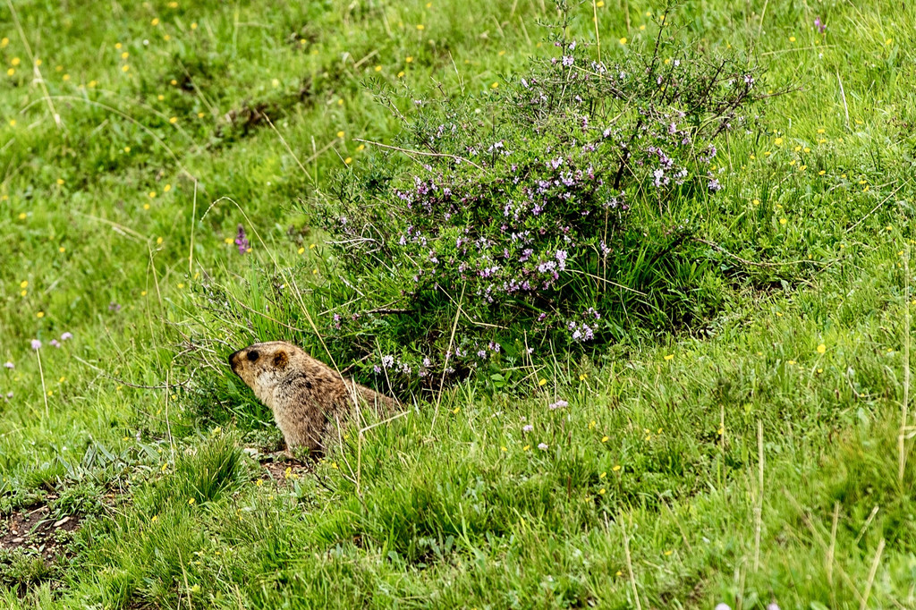赛赤寺主要特色是寺后山上的天葬台。这里是甘南唯一可以参观的天葬台,天葬在早上举行,不过我们并没有想法去看天葬。从大门进去第一个岔路口,往左边山上开大约3公里,看到经幡就到了。网上攻略说这里有很多土拨鼠,我们左顾右盼没找到,上车掉头准备离开时,女朋友突然在车前的草地上看到一直又肥又壮的土拨鼠。原来土拨鼠的窝都在旁边山坡上。今天辩经看到了,土拨鼠也看到了,真是心满意足的一天。