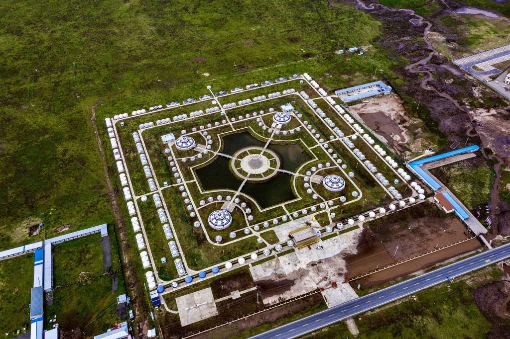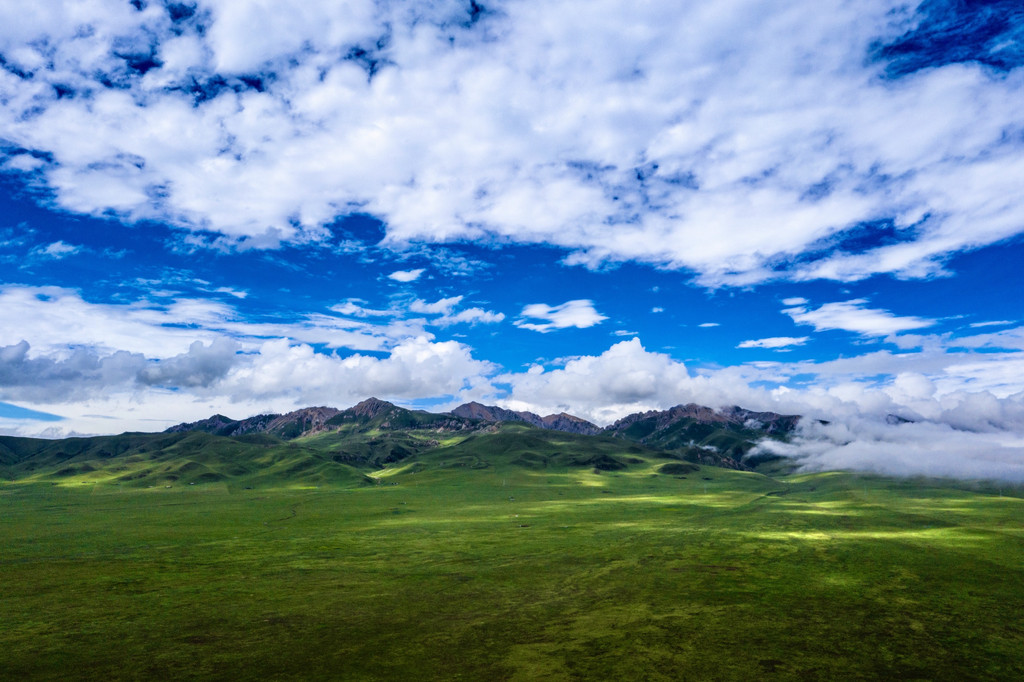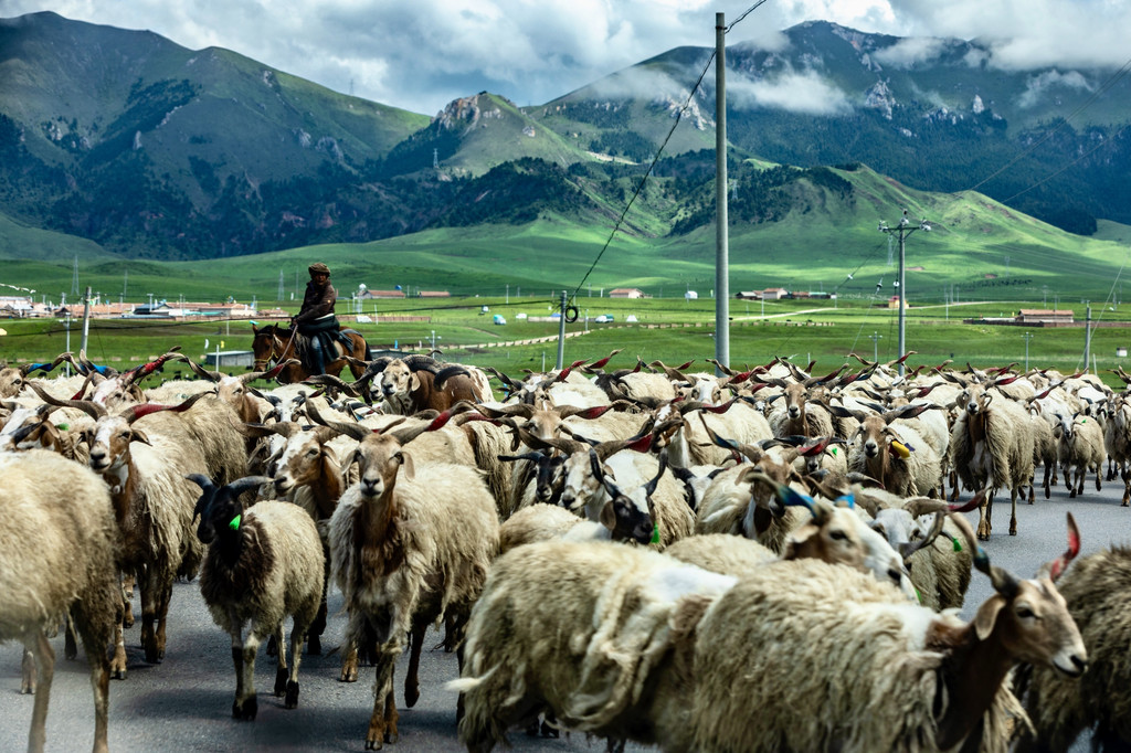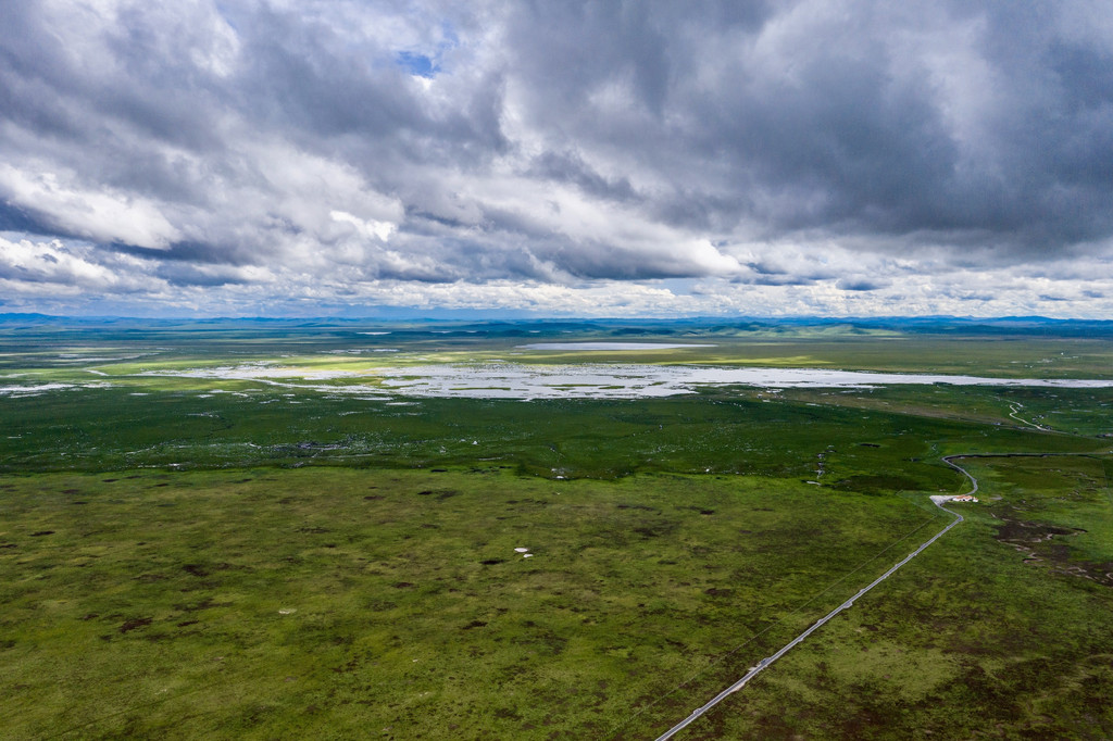 接下来往南到若尔盖的黄河九曲第一湾,直线行程115公里,约2小时,不过我们绕经若尔盖花湖,路程多了35公里,航拍了几张照片,也多花了一小时时间。沿途基本区间测速,仍不时看到牧民们赶牛放羊过马路,路上有个较大的休息区,竖着一块碑「九大元帅走过的草原」,在这里可以欣赏若尔盖草原。