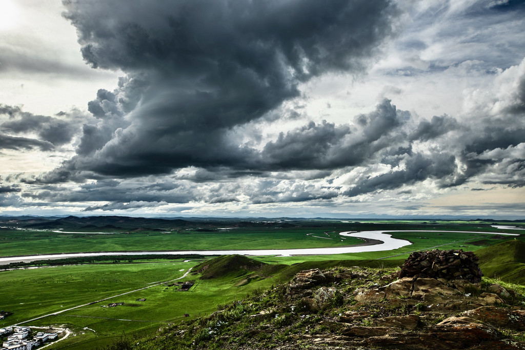 到山顶观景台大约6点半,天色还很亮,许多摄影爱好者已经架好了三脚架在等8点半的夕阳。观景台上有个圆形餐厅,可供休息,绕着餐厅一周向四方眺望四方云彩,有的如棉如絮、有的如烟似雾、有的是黑云翻墨、有的如巨龙归巢,千姿百态。回到停车场航拍几张照片,然后到唐克镇上吃饭。酒店老板跟我们说:「晚上又要下暴雨了,前一晚下的非常厉害,前几天天气好的时候夕阳非常美」,「这里坏天气很少,大部分时间都可以看到很漂亮的夕阳。」,看来我们的运气仍然不够好,不过也该知足了。