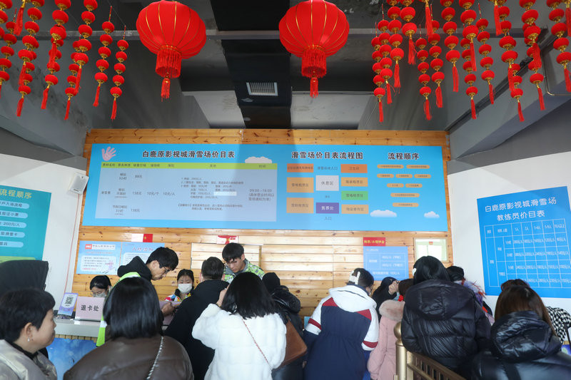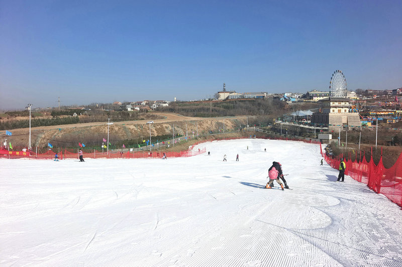 白鹿原影视城滑雪场占地25000余平方米,主雪道长300米宽60米,坡度达到7度左右,可容纳1500余人同时狂欢。