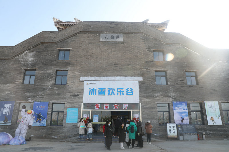 在滑雪场玩罢,还可以在近旁的影视城逛街、看演出,以及品尝各种特色美食。