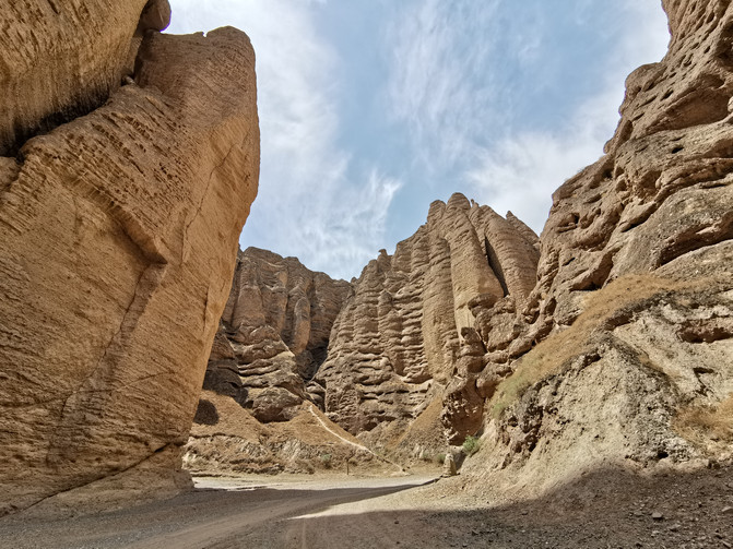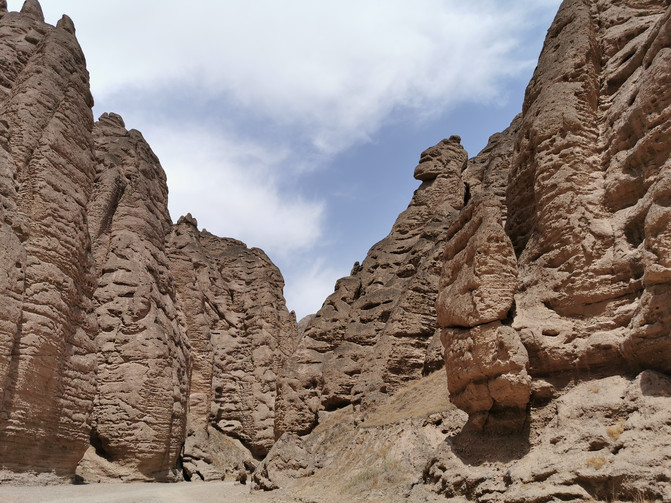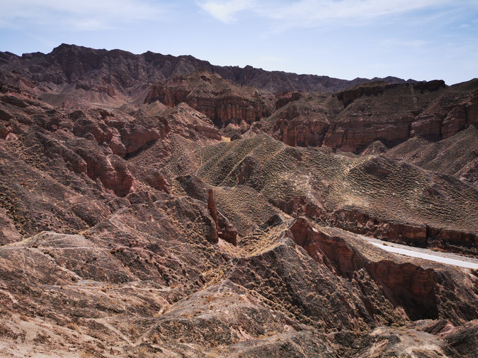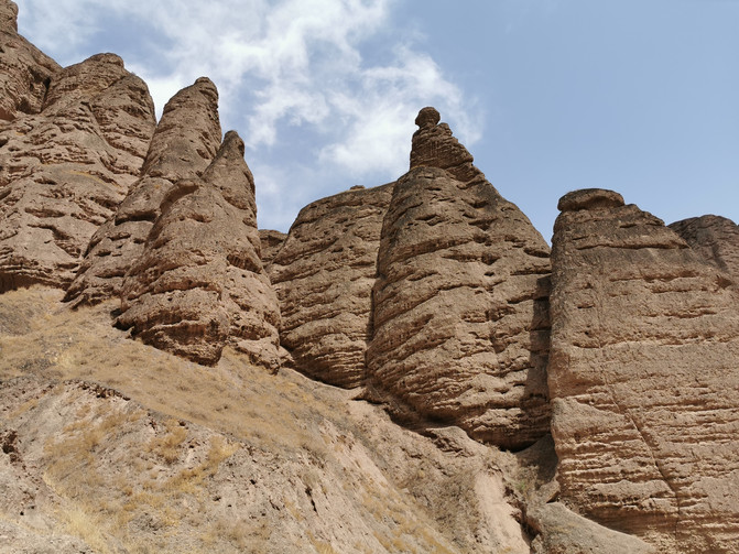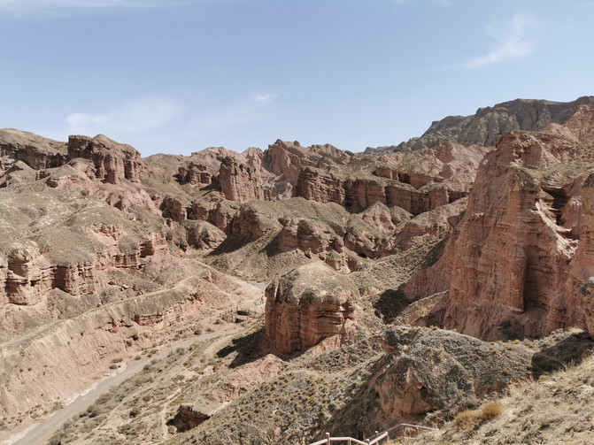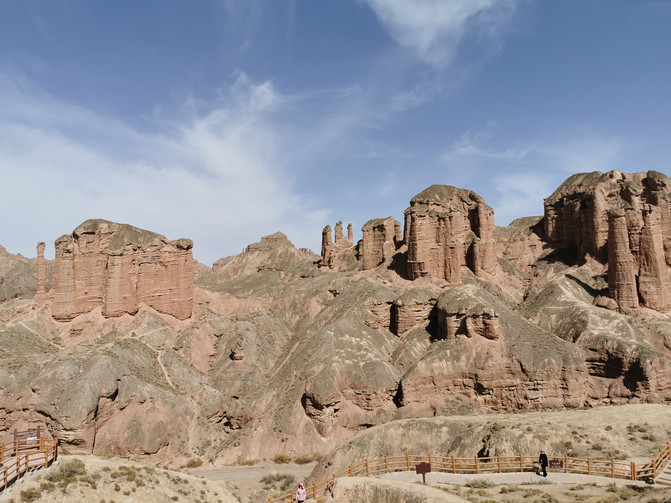 这里是雕刻师的杰作。不以缤纷色彩取胜,但嶙峋多姿的窗棂状宫殿式丹霞、柱廊状丹霞、叠板状丹霞等宛如浑然天成的古罗马宫殿,同样令人叹为观止。