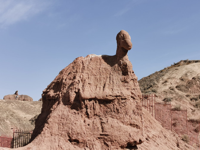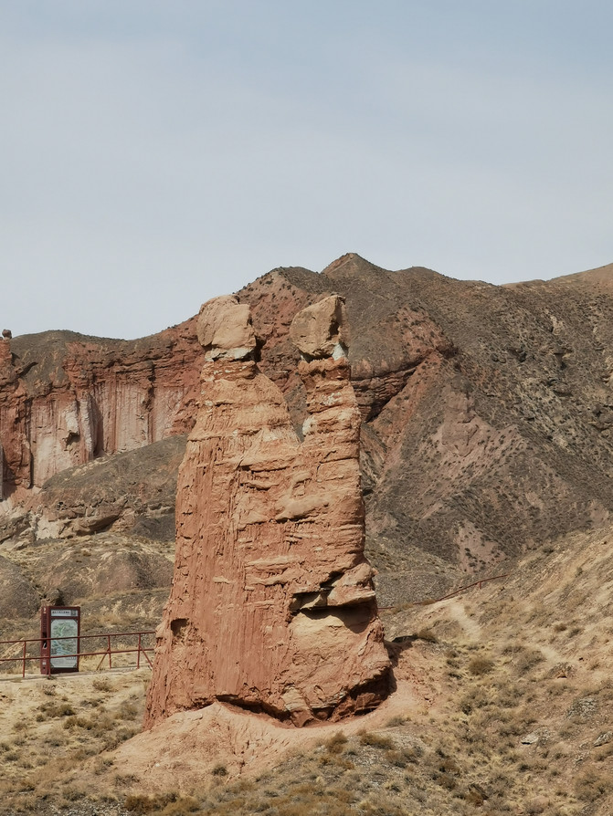 观光车停留的第一个点是小西天区域,这里有1公里左右的步行栈道,可以到观光台上参观,游玩这个区域大约需要1小时时间。这里有神驼迎宾、楼兰商驼、大地之根、神将守望和侍女拜佛等几处主要的丹霞景观,都是以形状命名,非常神似,每一处都可以拍出漂亮的照片。步行到栈道尽头的观景台后可以俯瞰周围赤红的丹霞景观,拍摄全景的大片。