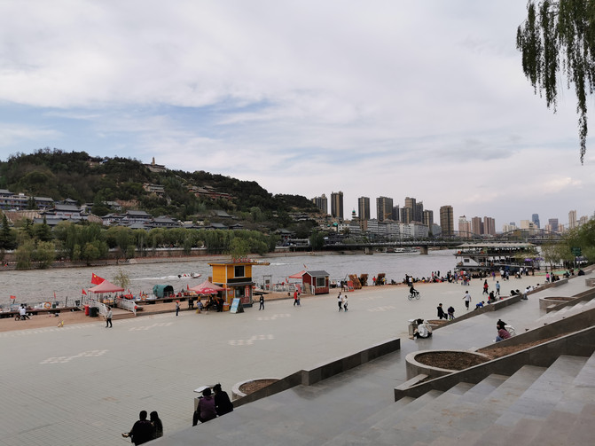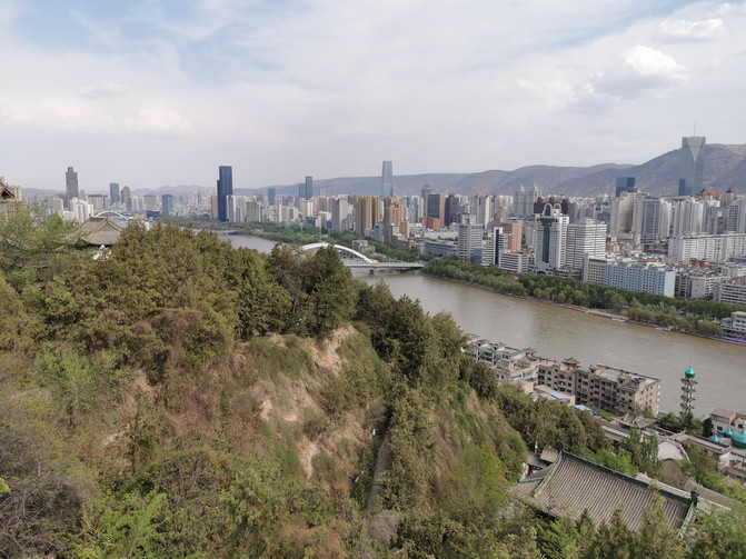 在山顶区域,可以看到兰州城市全景。一条黄河在脚下穿城而过,河岸两侧则是鳞次栉比的楼房,非常壮观。