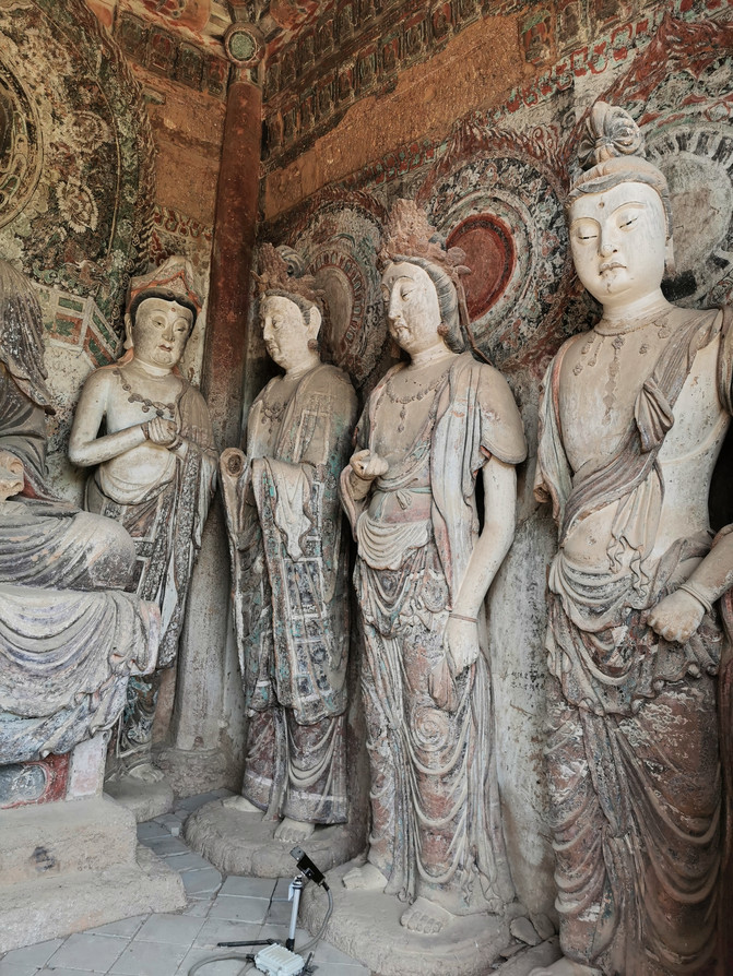 石窟内的雕塑艺术具有极强的文化延续性,从后秦时期的古朴凝重,到北魏时期的秀骨清像,从北周时期的脸型圆润,到隋唐时期的身材丰腴,再到两宋的写实求变,千余年来的雕塑风格的演变均有清晰的脉络可循。
