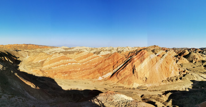 冰沟丹霞景区的面积很大,景区内开发的部分大约有10公里,在景区里有观光游览车。