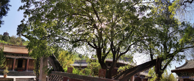 春秋古柏旁边有一棵龙爪槐树,形似九条龙。可惜超过10M,传不上来。
