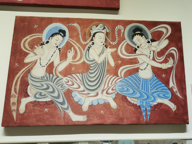 参观完洞窟,外面有博物馆,其中有几个原型复原的窟可以参观。下面几张临摹的图片都是博物馆的,可以随便拍一拍照啦。