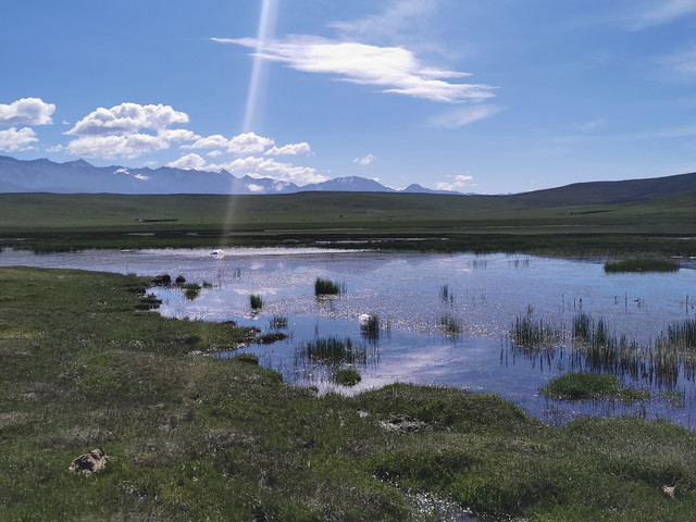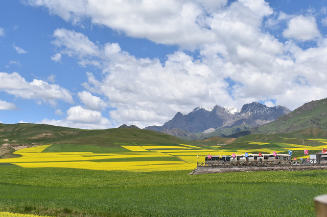 为什么说是艳·遇呢,在这里看到了不同想象中的那种单调,而是一碗牛肉面的一清二白三红四绿五黄;更是蓝天白云映衬下的沙土、荒漠、绿洲、花朵,以及有灵性的牦牛。