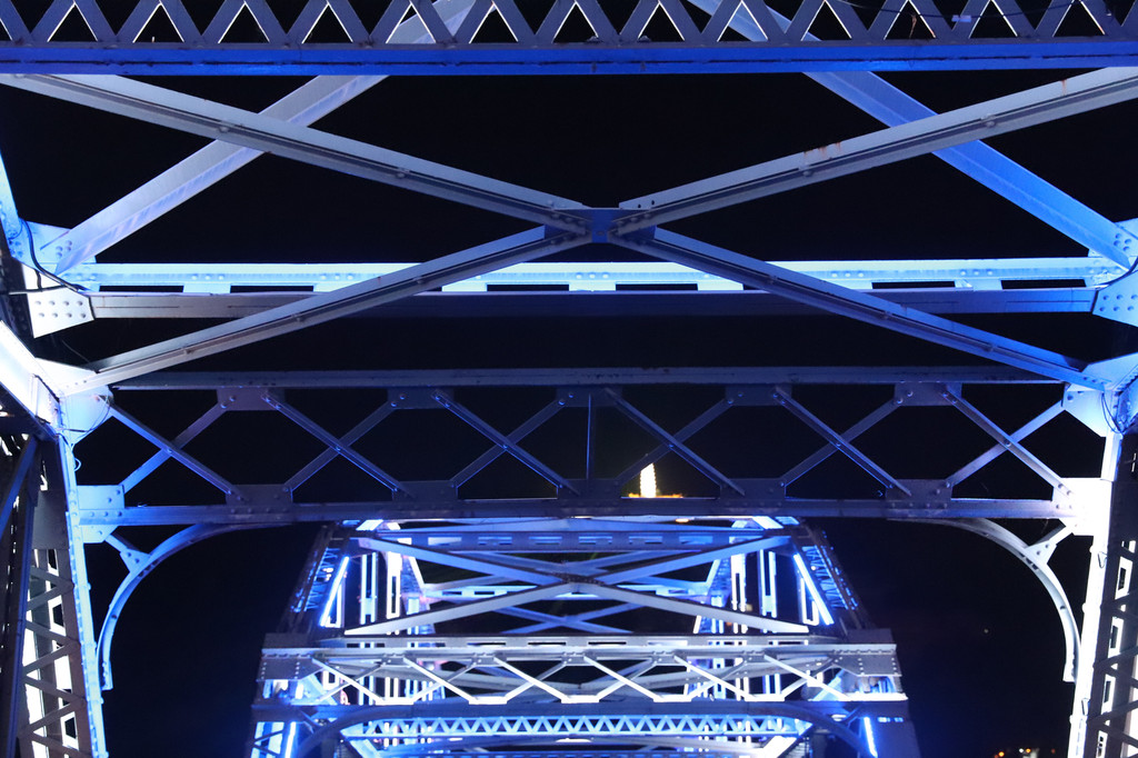 夜色下璀璨夺目的黄河铁桥—中山桥